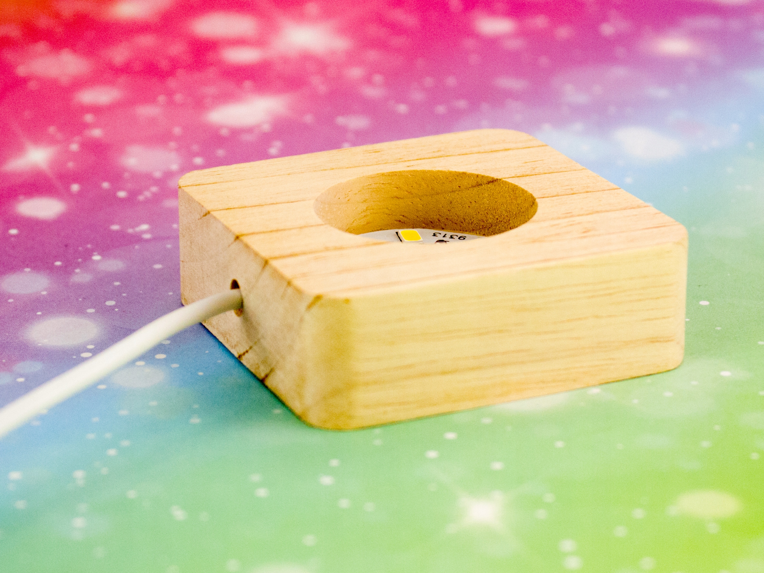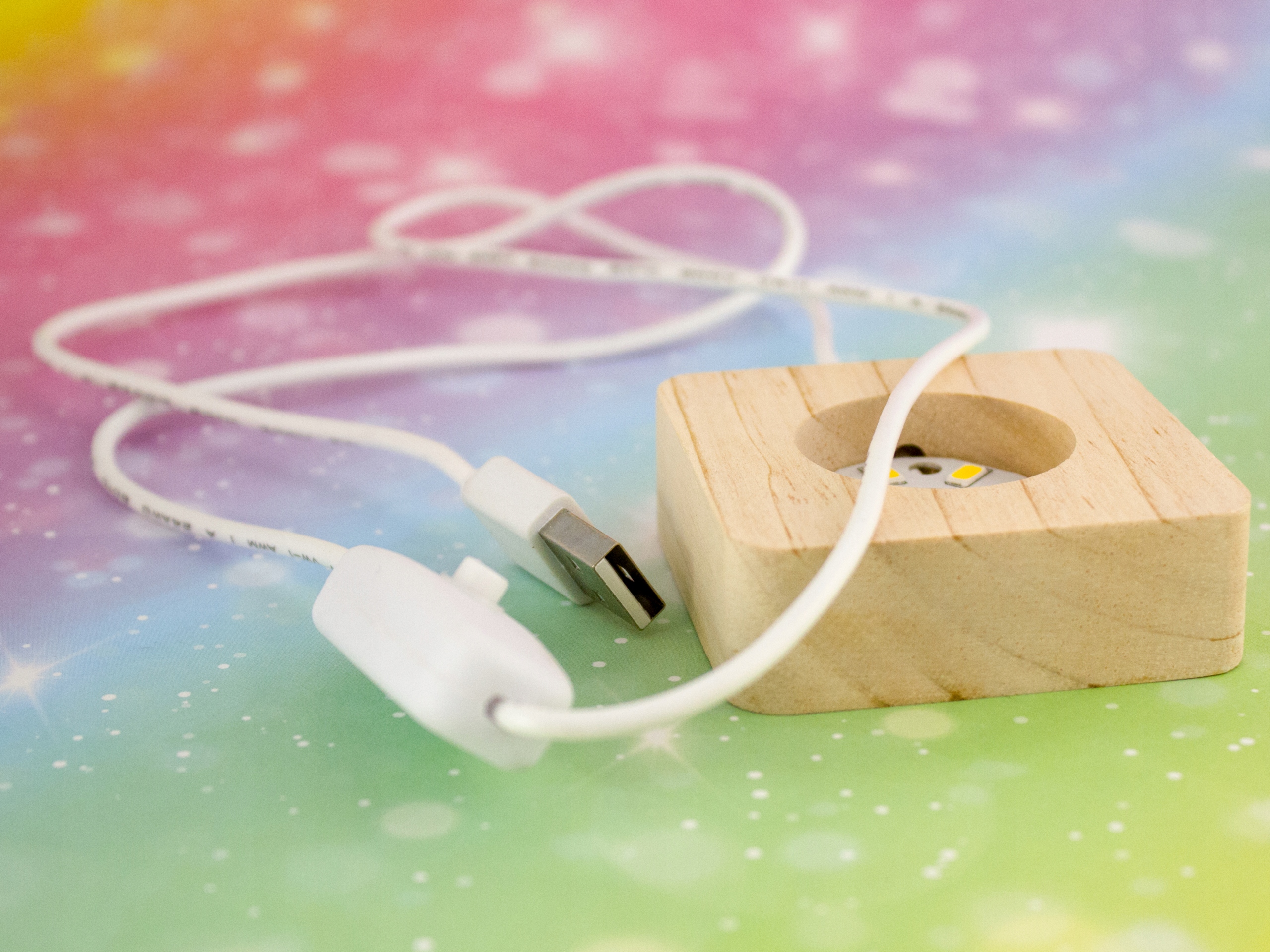 Przedmiotem oferty jest sama podstawka drewniana z kablem USB z włącznikiem/wyłącznikiem.