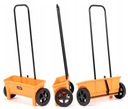Разбрасыватель рассыпает материал, высыпанный в контейнер (максимум 10 кг гранул). Разбрасыватель он оснащен 2 колесами, подставками и регулируемым кронштейном.
