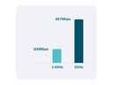 Obsługuje połączenia bezprzewodowe w standardzie 802.11ac o 3 razy większej prędkości niż dotychczas dostępne połączenia w standardzie 802.11n. Dzięki jednoczesnej transmisji o prędkości 867Mb/s w wolnym od zakłóceń paśmie 5GHz oraz transmisji o prędkości 300Mb/s w tradycyjnym paśmie 2,4GHz użytkownicy dostają do dyspozycji 1200Mb/s maksymalnej łącznej przepustowości dla strumieniowych transmisji wideo w jakości HD, gier online i innych wymagających zastosowań biurowych lub domowych.