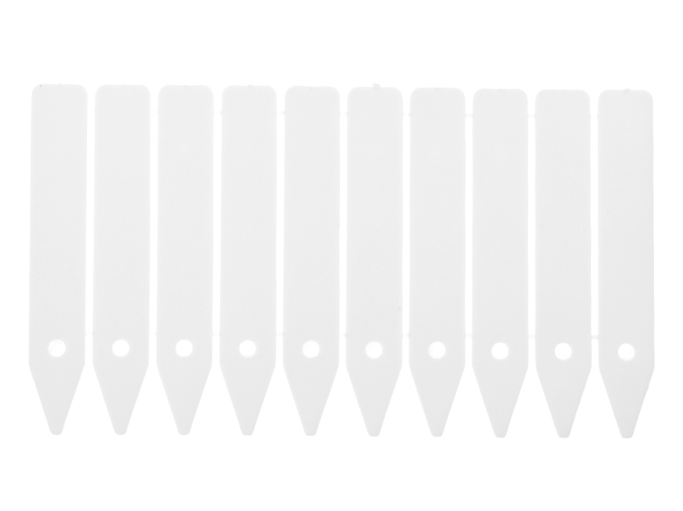 Etykiety zostały wykonane z wysokiej jakości tworzywa sztucznego odpornego na wszelkie warunki atmosferyczne. Dzięki matowej powierzchni, na której można zamieścić wiele informacji np. termin nasadzenia, czas podlewania czy innych, napis jest trwały i nie zmywa się pod wpływem warunków atmosferycznych.
