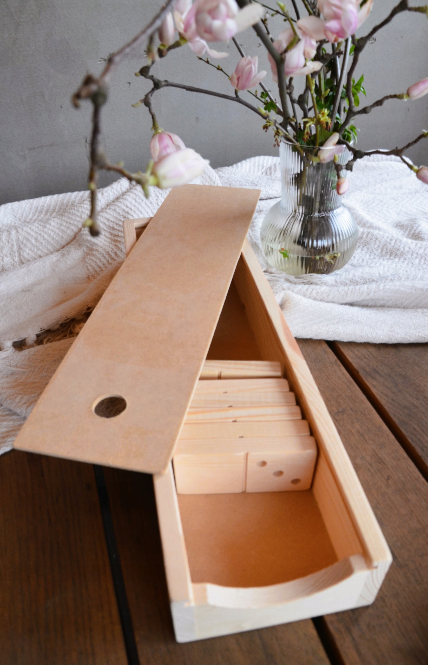 Idealna gra na zimowe wieczory, a także na zabawy na pikniku. Zapakowane w drewnianą skrzyneczkę, dobrze dopasowaną do klocków - zapobiega pogubieniu się elementów.