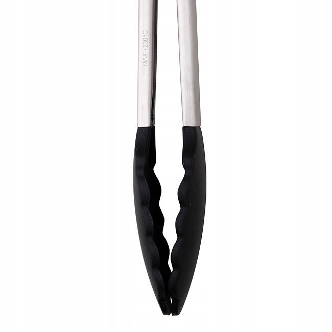 Szczypce posiadają specjalnie profilowaną rączkę, wykończoną antypoślizgowym nylonem, dzięki której stabilnie leży w dłoni podczas serwowania pieczonych dań.