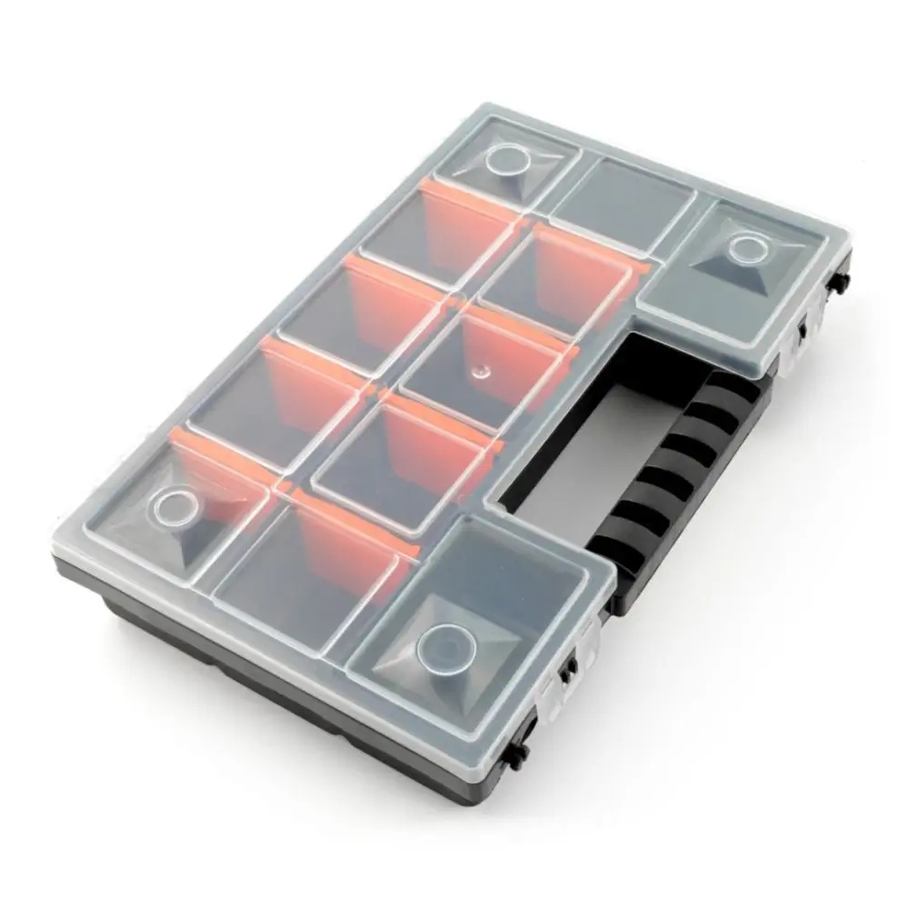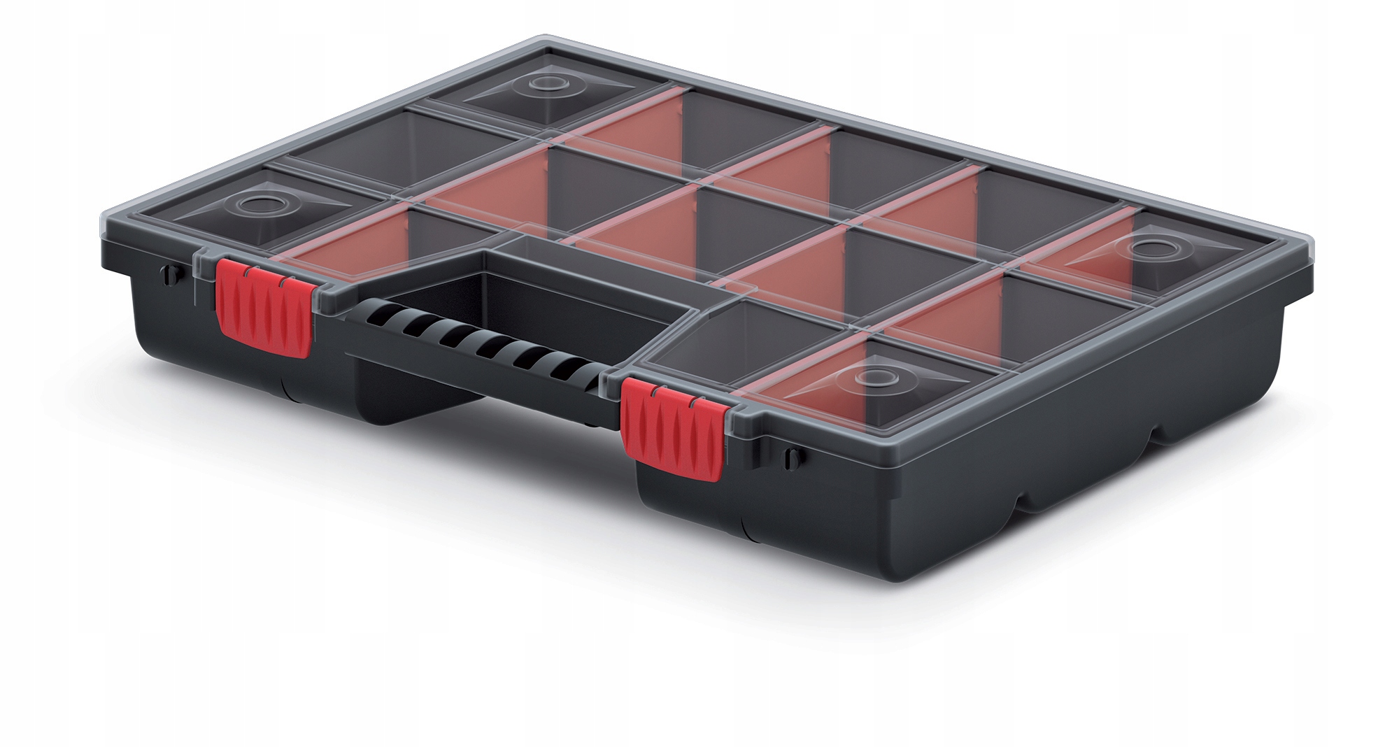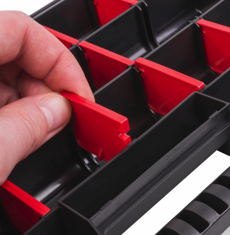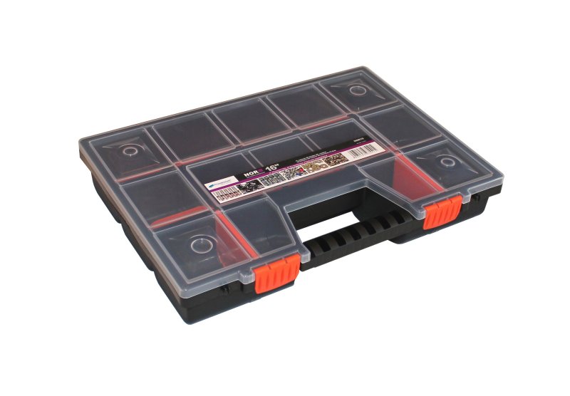 Органайзер NOR16 состоит из пяти основных отсеков. Четыре из них имеют 10 съемных отсеки. Максимум можно получить 15 камер размером 7х8 см и глубиной 6 см.