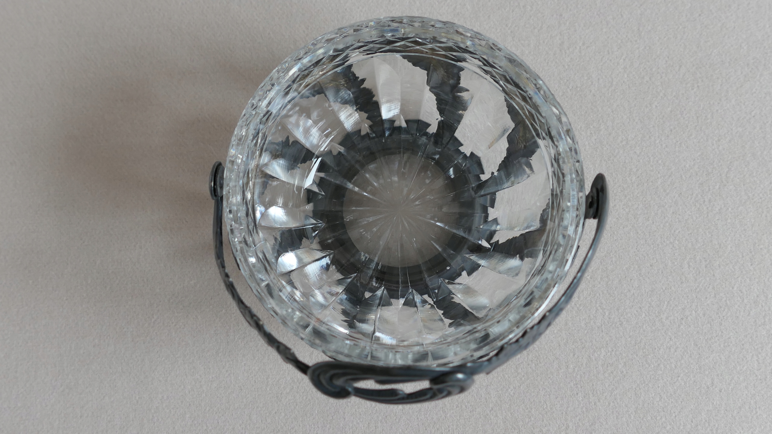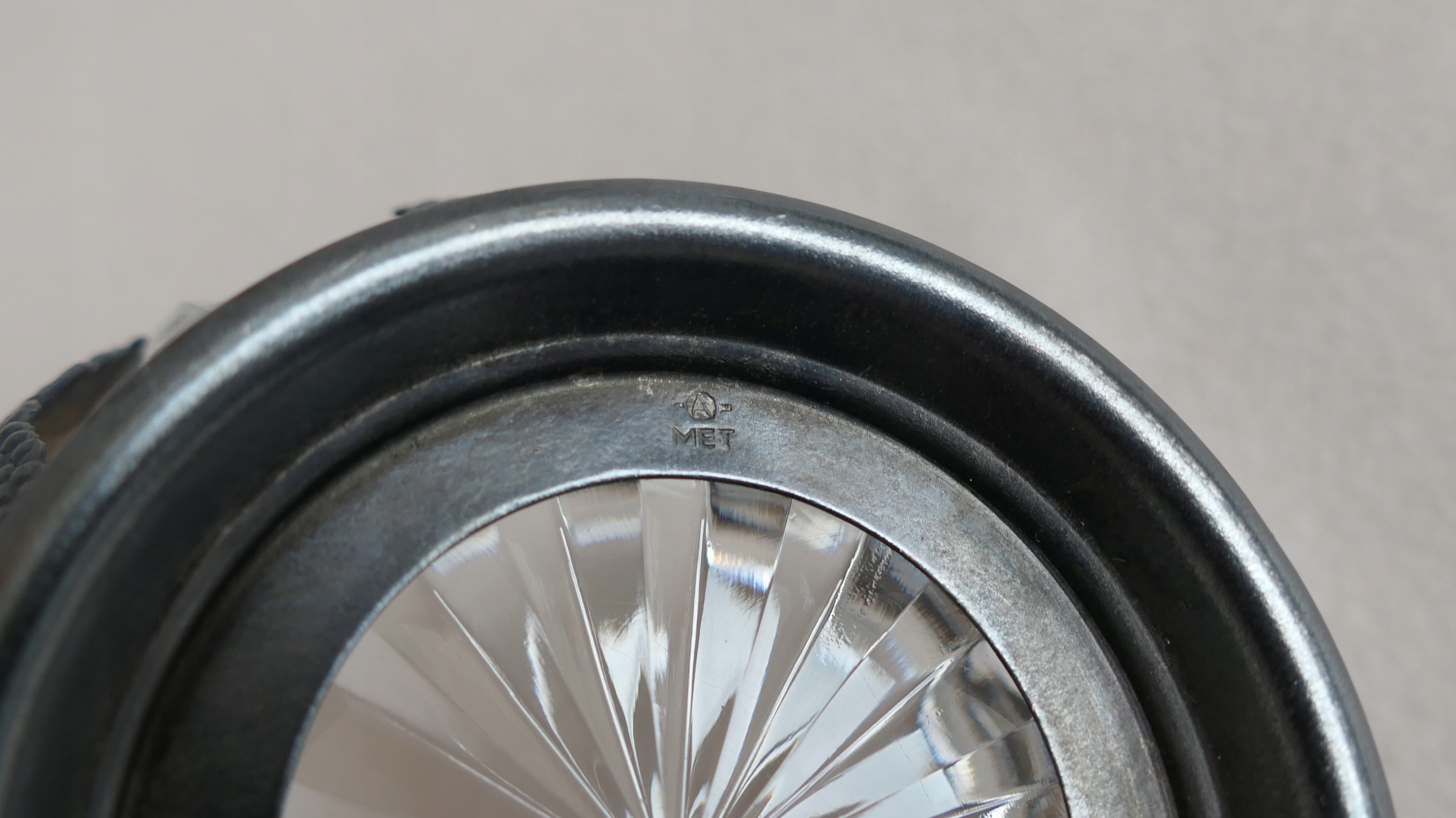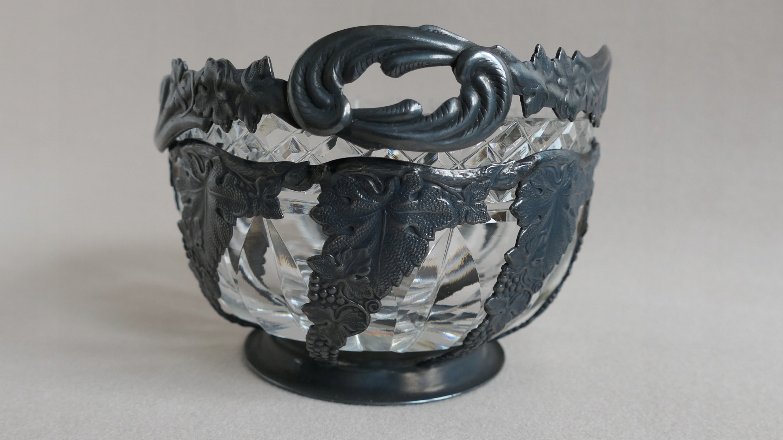 HEFRA cukiernica plater + kryształ PRL WINOGRONA. Wysokość: 14/ 7,5cm, średnica: 11,5cm. Stan bardzo dobry, widoczny na zdjęciach.