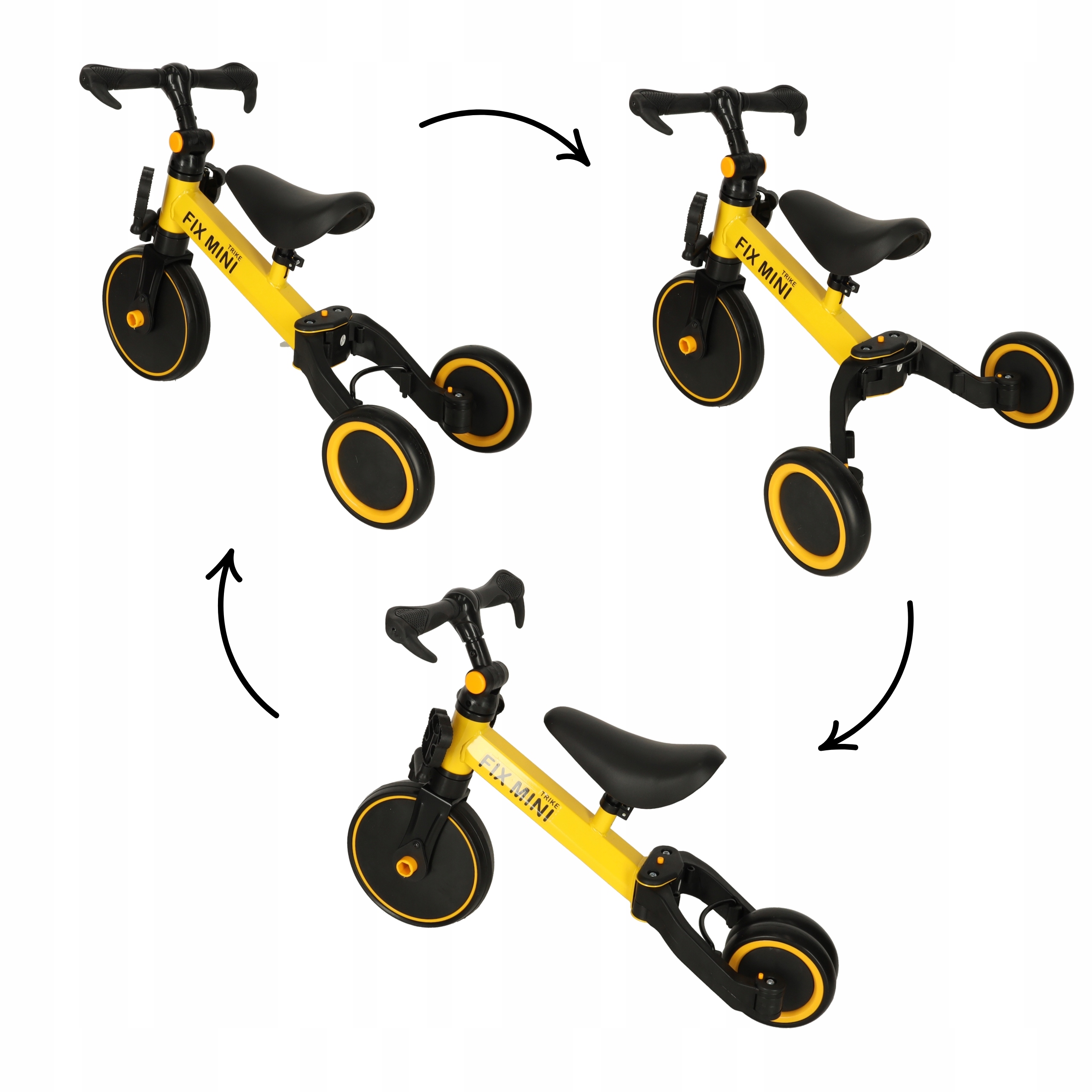 Dzięki przemyślanej budowie rowerek może pełnić trzy różne funkcje, dopasowując się do poziomu umiejętności dziecka. Najpierw jako rowerek biegowy, następnie trójkołowy rowerek z pedałami, a na końcu dwukołowy dla nauki równowagi.