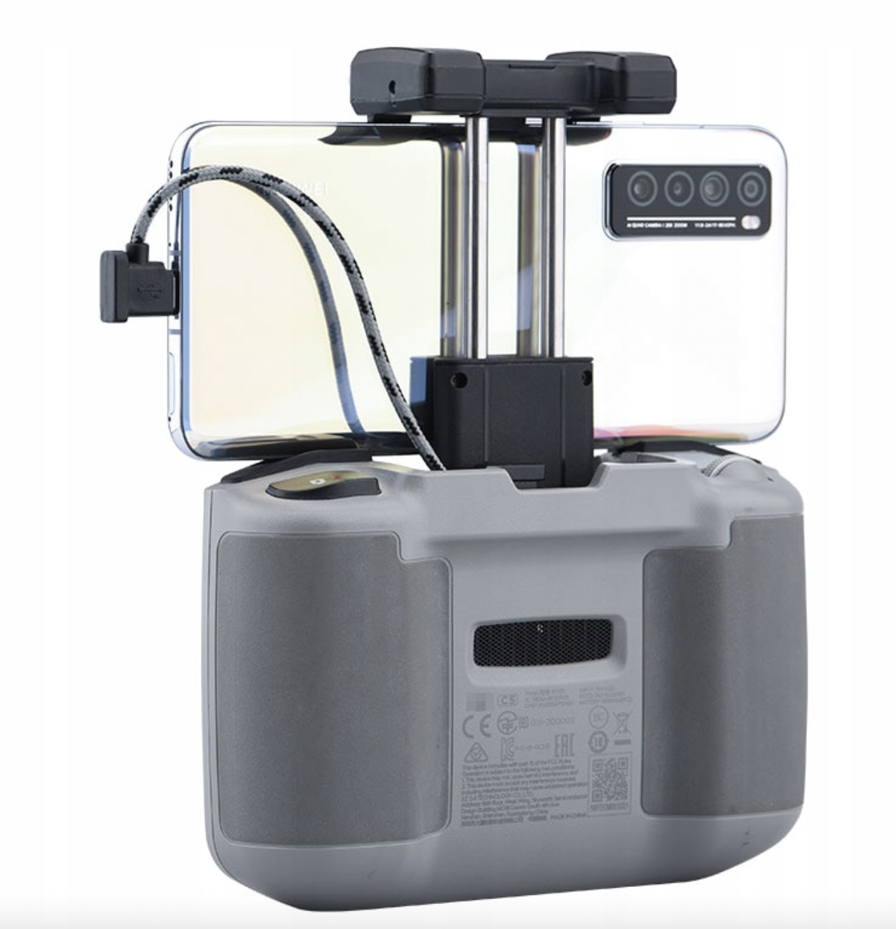 Połączenie odbywa się za pośrednictwem standardowego złącza USB TYP C w kontrolerze drona oraz złączem typu USB TYP C w telefonach / smartfonach i tabletach.
