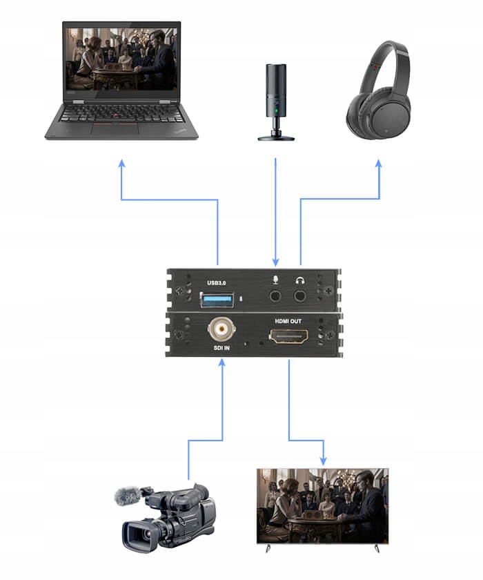 Nagrywarka SDI Spacetronik SP-SVG22 to urządzenie pozwalające na nagrywanie z zewnętrznych źródeł po kablu SDI materiału wideo wysokiej rozdzielczości na dysk twardy komputera PC. Co ważne do nagrywania jest potrzebny komputer z systemem Windows (7/8/10), nagrywanie odbywa się przez program OBS Studio.