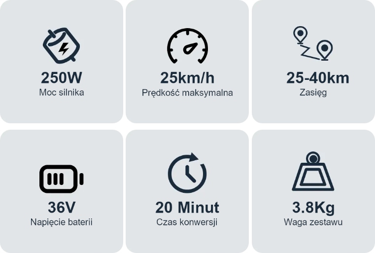 W swojej ofercie posiadamy także inne zestawy do konwersji roweru: