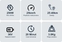 Prędkość maksymalna wynosi 25km/h. Jest to prędkość legalna dopuszczona przez Unie Europejską
