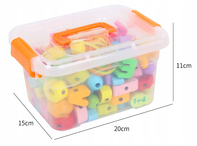 Nawlekanie i zdejmowanie klocków ze sznurka to jedna z ulubionych zabaw, w którą dzieci mogą bawić się bez końca, jednocześnie ćwiczą zdolności manualne i motorykę małą.