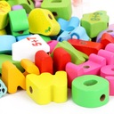 Bardzo duży zestaw różnorodnych klocków z otworami do nawlekania na sznurek.