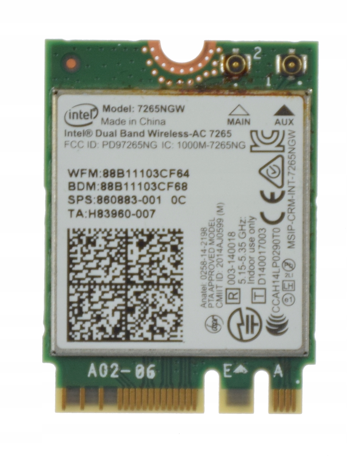 Код производителя Wireless-AC 7265 7265NGW SPS 860883-001