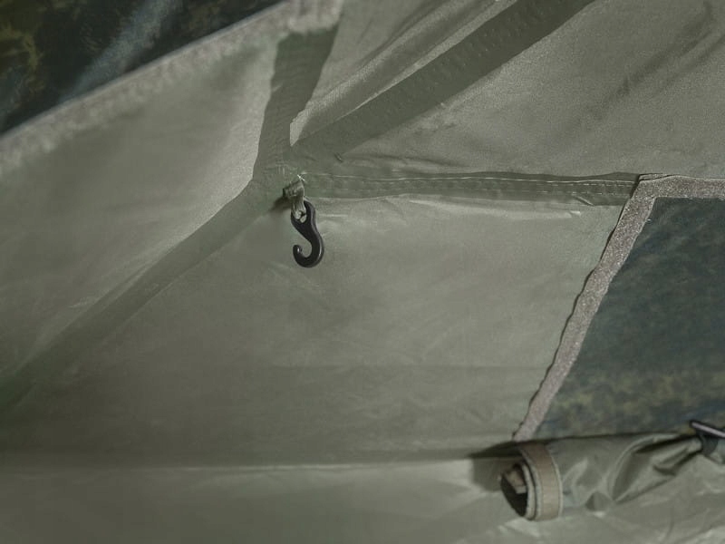Еще одним большим преимуществом является обширная система вентиляции, которая состоит из нескольких окон и крышки. Просторная москитная сетка расположена как на передней, так и на задней стенках, а четыре меньших окна расположены прямо в потолке палатки. Это позволяет воздуху течь внутрь, когда вы не можете проветрить всю палатку большими окнами. Вы по достоинству оцените это ночью, когда это поможет уменьшить конденсацию водяного пара на внутренних стенах. Навес над входом обеспечивает дополнительную защиту от солнца и дождя. Крыша прикреплена ко всей конструкции за используйте несколько зажимов, чтобы избежать ненужных движений, вызванных ветром. CUBICON также 4 стабилизирующих троса и дюбеля в комплекте, а также стандартный пол, закрепленный с помощью высокое качество молнии по всему периметру. Больше грязи и нежелательных посещений грызуны!