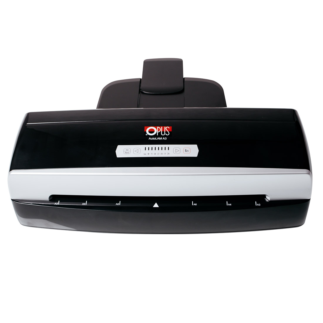 Laminator biurowy Opus AutoLam do formatu A3 pracuje w technologii ogrzewanych wałków, nie wymaga użycia nośnika papierowego lub foliowego. Laminator posiada tryb automatyczny “Auto Sense”, który wykrywa grubość folii i informuje użytkownika o ewentualnych błędach. W trybie ręcznym w laminatorze Opus AutoLam A3 mamy do dyspozycji sześć zaprogramowanych trybów laminacji (dla folii: 75 µm, 100 µm, 125 µm, 150 µm, 175 µm oraz 250 µm).