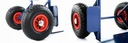 Koła z łożyskami kulkowymi oraz oponami pneumatycznymi zapewniają optymalną zwrotność, a płyta podłogowa ułatwia przechylanie wózka.