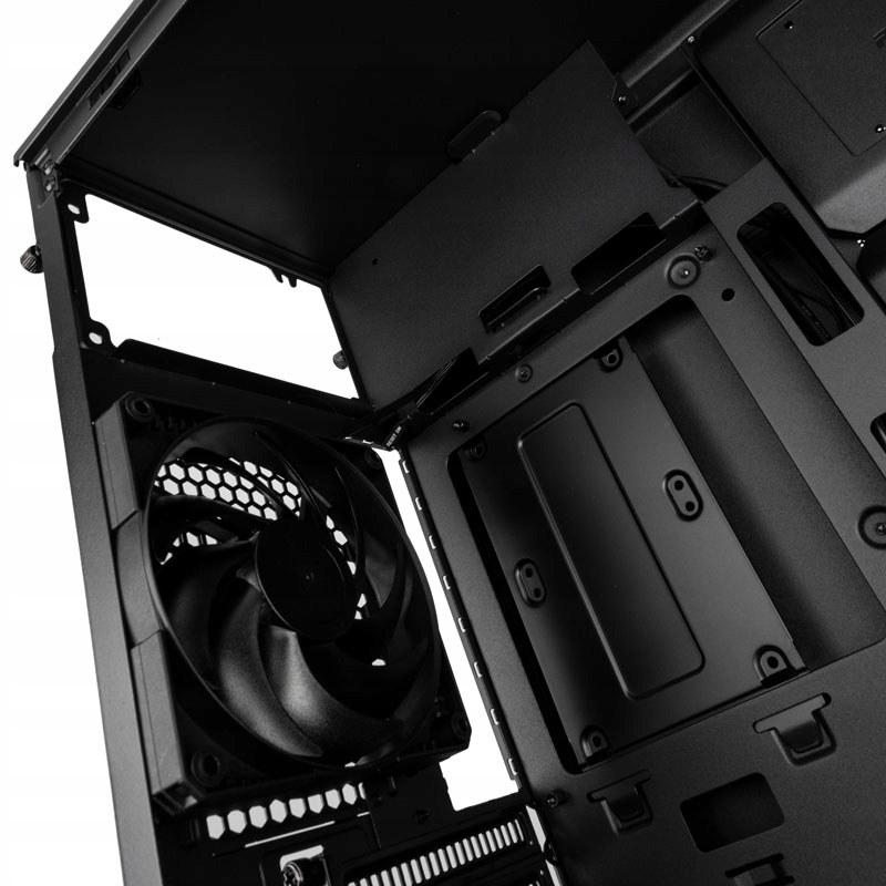 PHANTEKS Eclipse P200A nawiązuje do dobrze znanego projektu serii PHANTEKS Eclipse. Trapezowy front składa się w całości ze stalowej kratki wentylacyjnej o gęstych oczkach. Perforacje o wielkości zaledwie jednego milimetra zapewniają, że zasysane powietrze jest wolne od kurzu, a mimo to bez przeszkód dostaje się do wnętrza obudowy. Za nim można zainstalować dwa wentylatory 120 lub 140, preinstalowany jest tam wentylator 120 mm PWM. Panel przedni można łatwo zdjąć i wyczyścić. Z tyłu jest miejsce na wentylator 120 mm. Po prawej stronie można zainstalować dwa wentylatory 120 mm, perforowane wycięcie w prawej części bocznej zapewnia również wystarczającą wentylację. Na dole można zamontować jeszcze dwa wentylatory 120 mm. Odpowiednio, radiatory mogą być umieszczone w Eclipse P200A w tym samym czasie, radiator może mieć 240 mm z boku i do 280 mm z przodu. Należy jednak zauważyć, że radiator 240 mm nie może być wyższy niż 279 mm, a przedni nie może być wyższy niż 325 mm. Obudowa wyposażona jest w wysuwany filtr przeciwkurzowy na spodzie.