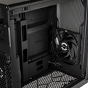 Phanteks Eclipse P200A jest przeznaczona dla graczy zwracających uwagę na cenę i oferuje liczne funkcje, które są również interesujące dla entuzjastów komputerów PC. Jest nieco większa od klasycznych obudów Mini-ITX, dzięki czemu oferuje więcej miejsca na sprzęt, np. zasilacz w formacie ATX. Przód z siatki na całej powierzchni zapewnia duży dopływ powietrza, a jednocześnie zapobiega przedostawaniu się kurzu do wnętrza obudowy. Za nim można zamontować dwa wentylatory 120 lub dwa 140. Zarówno prawy, jak i lewy zamknięty panel boczny mają również wycięcia z siatki, aby zapewnić dodatkowe wsparcie dla przepływu powietrza. Wentylator 120 mm PWM jest już zainstalowany z przodu i z tyłu.