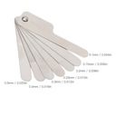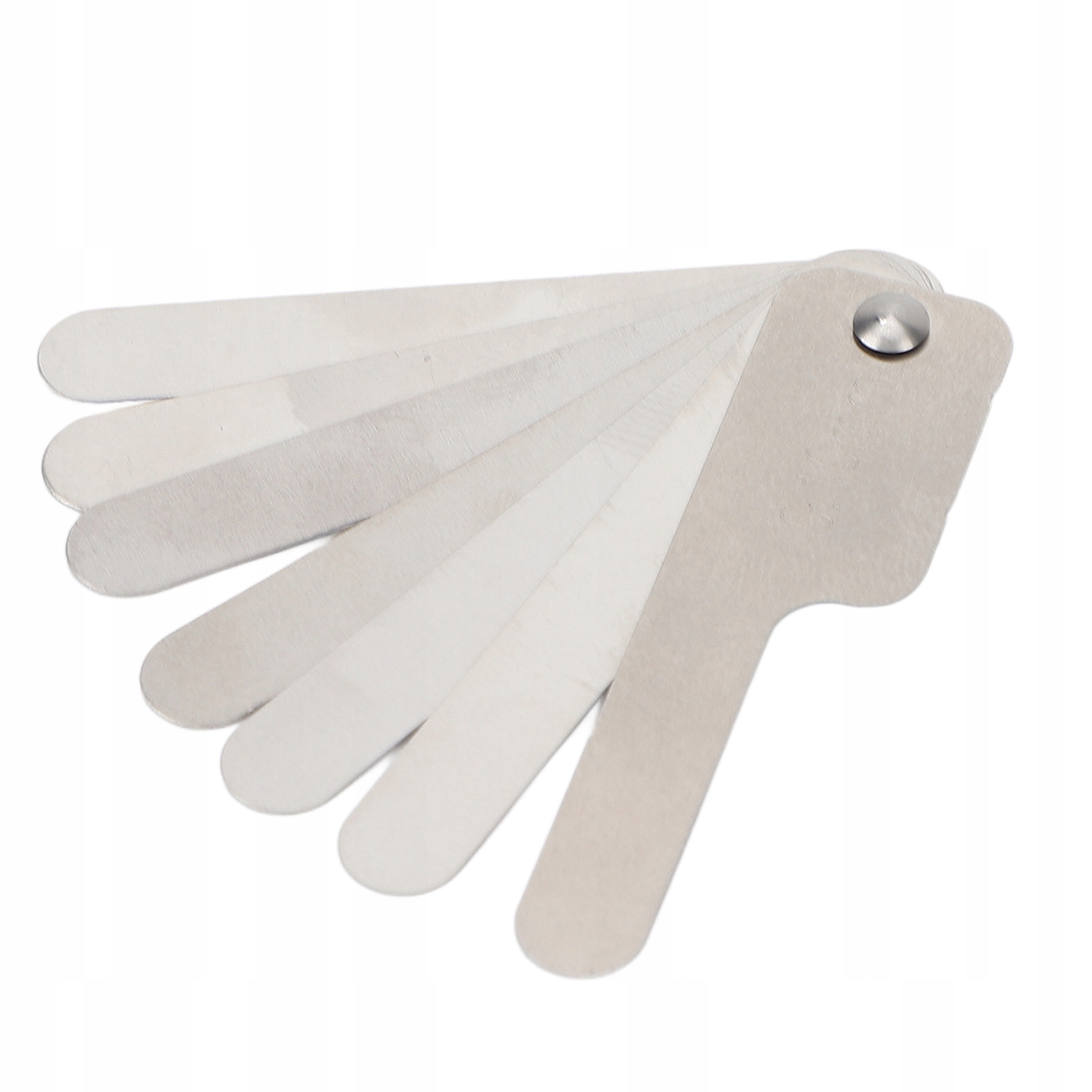 7-ostrzowy szczelinomierz: Zestaw siedmiu sztuk, odpowiadających 7 rozmiarom, które są 0,1 mm, 0,15 mm, 0,2 mm, 0,25 mm, 0,3 mm, 0,4 mm, 0,5 mm, spełniają Twoje potrzeby użytkowania.