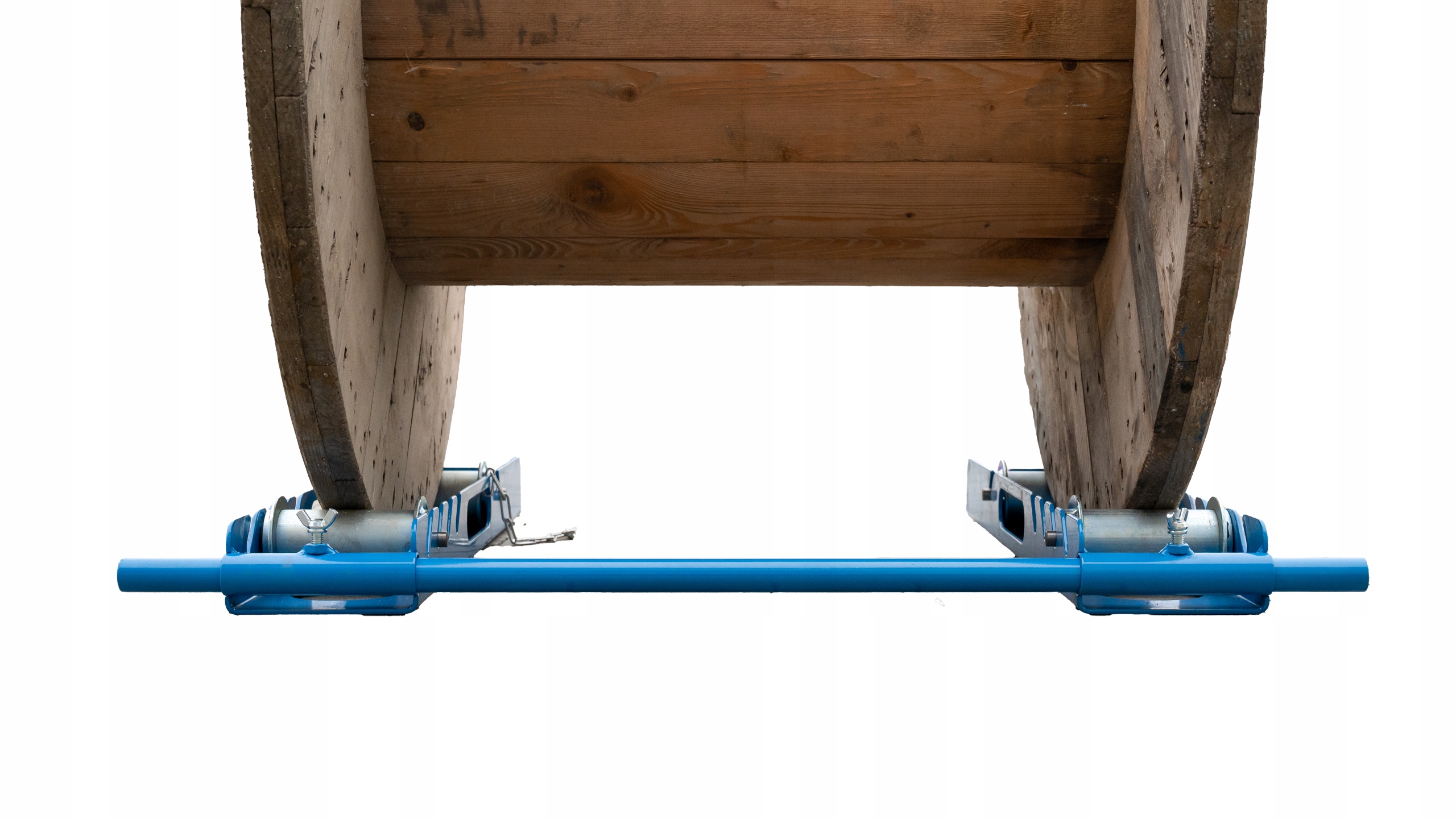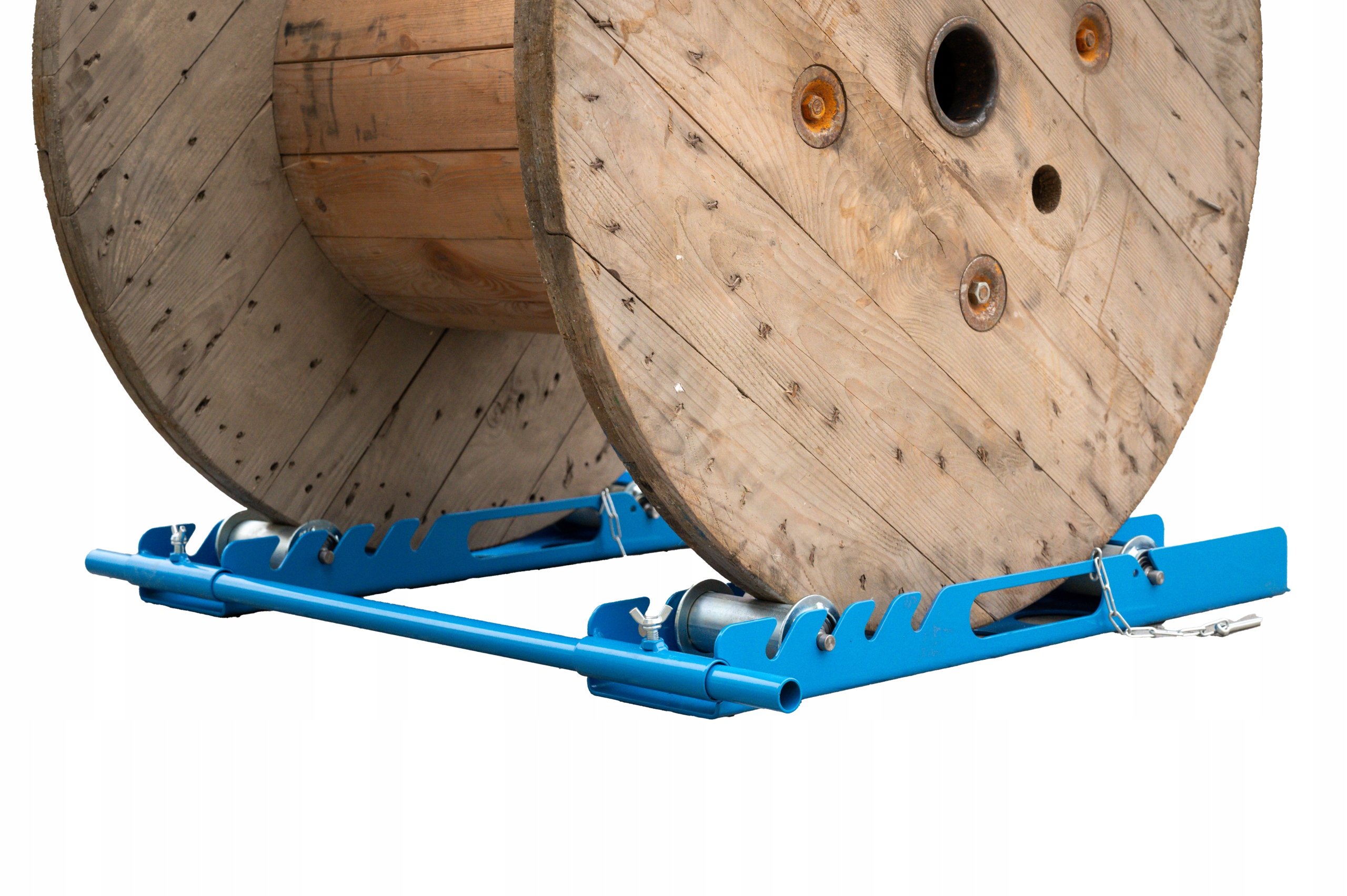✅ Dzięki zastosowaniu dwóch kołnierzy prowadzących i łagodnego kąta wjazdu, wtaczanie ciężkich bębnów na rozwijak nie stanowi problemu.