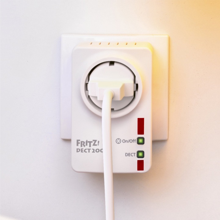 Inteligentne gniazdko pozwala na zdalne i ręczne zarządzanie zasilaniem podłączonych urządzeń. FRITZ!DECT 200 łączy się bezprzewodowo z routerem FRITZ!Box, za pomocą którego możliwe jest skonfigurowanie zaawansowanych funkcji kalendarza. Urządzenie posiada wbudowany watomierz który pozwala na monitorowanie zużycia energii. Urządzeniem można sterować z komputera, telefonu komórkowego, a nawet przez Internet.