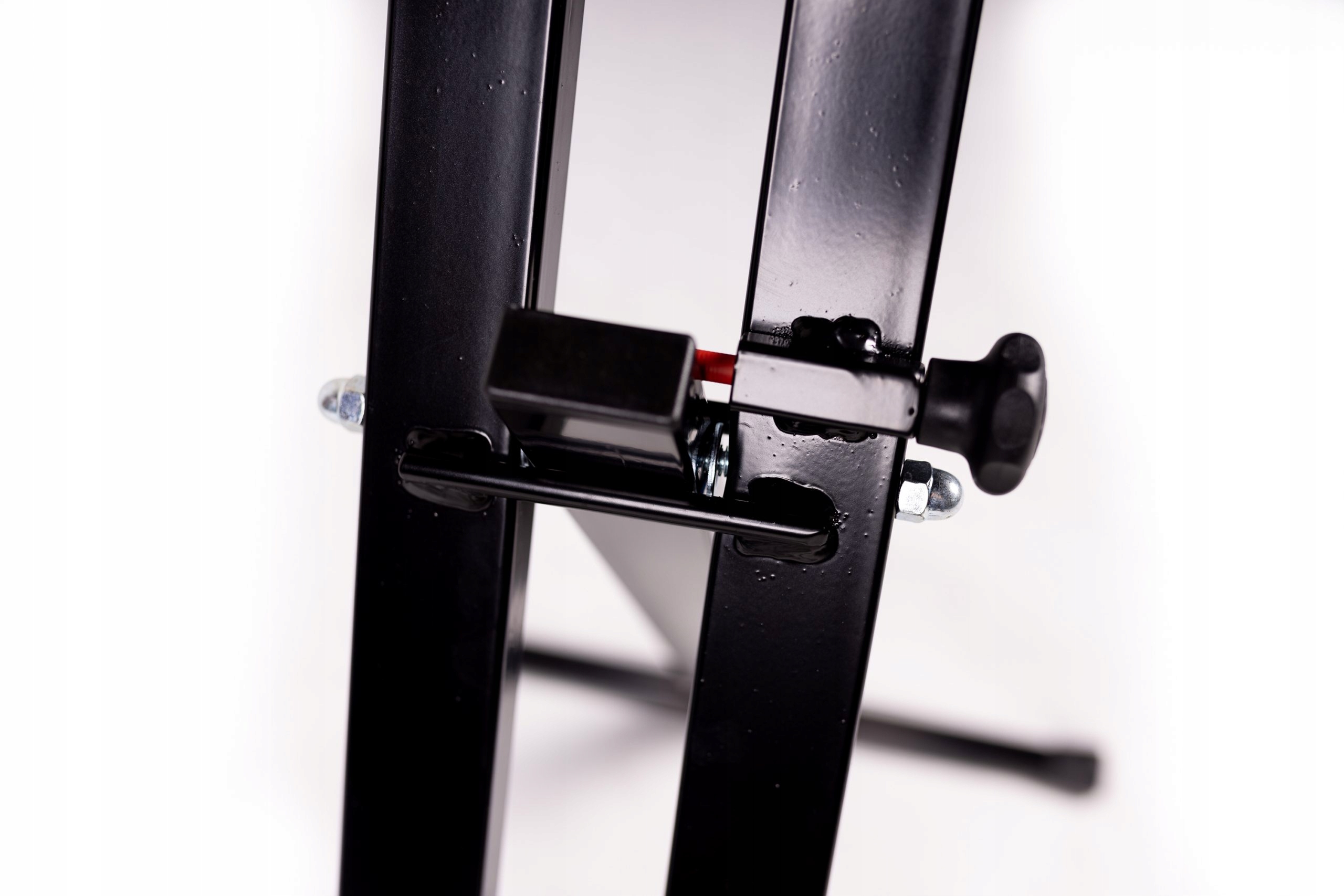 Profesjonalny stołek estradowy dla gitarzystów - z oparciem i podnóżkiem w jednym.