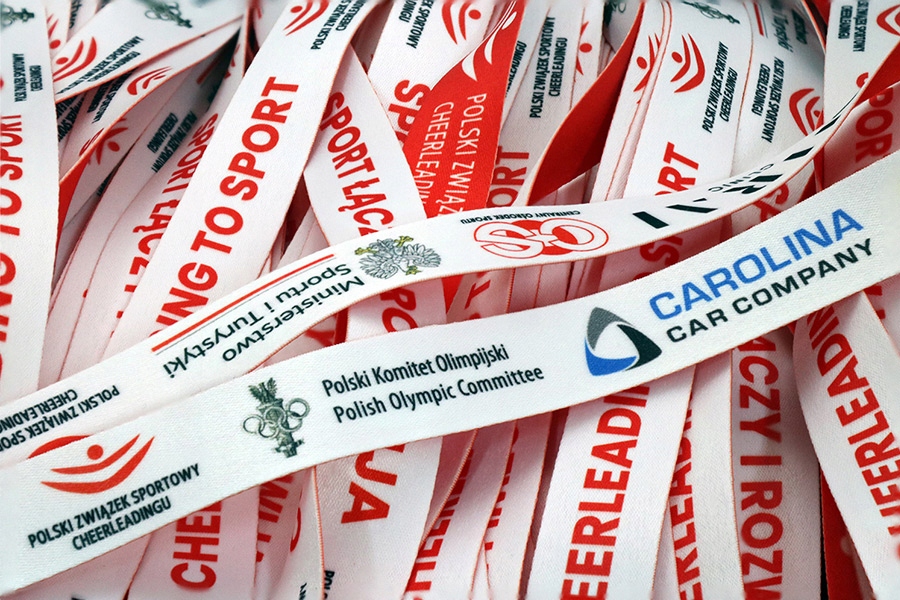 Nadruki na smyczy wykonujemy metodą sublimacji. Nadruk sublimacyjny polega na naniesieniu Państwa grafiki na specjalny materiał na papierze. Następnie przy zastosowaniu wysokiej temperatury i ciśnienia jest on przenoszony na taśmę. Technologia ta umożliwia wykonanie nadruku na smyczy w pełnej kolorystyce CMYK.