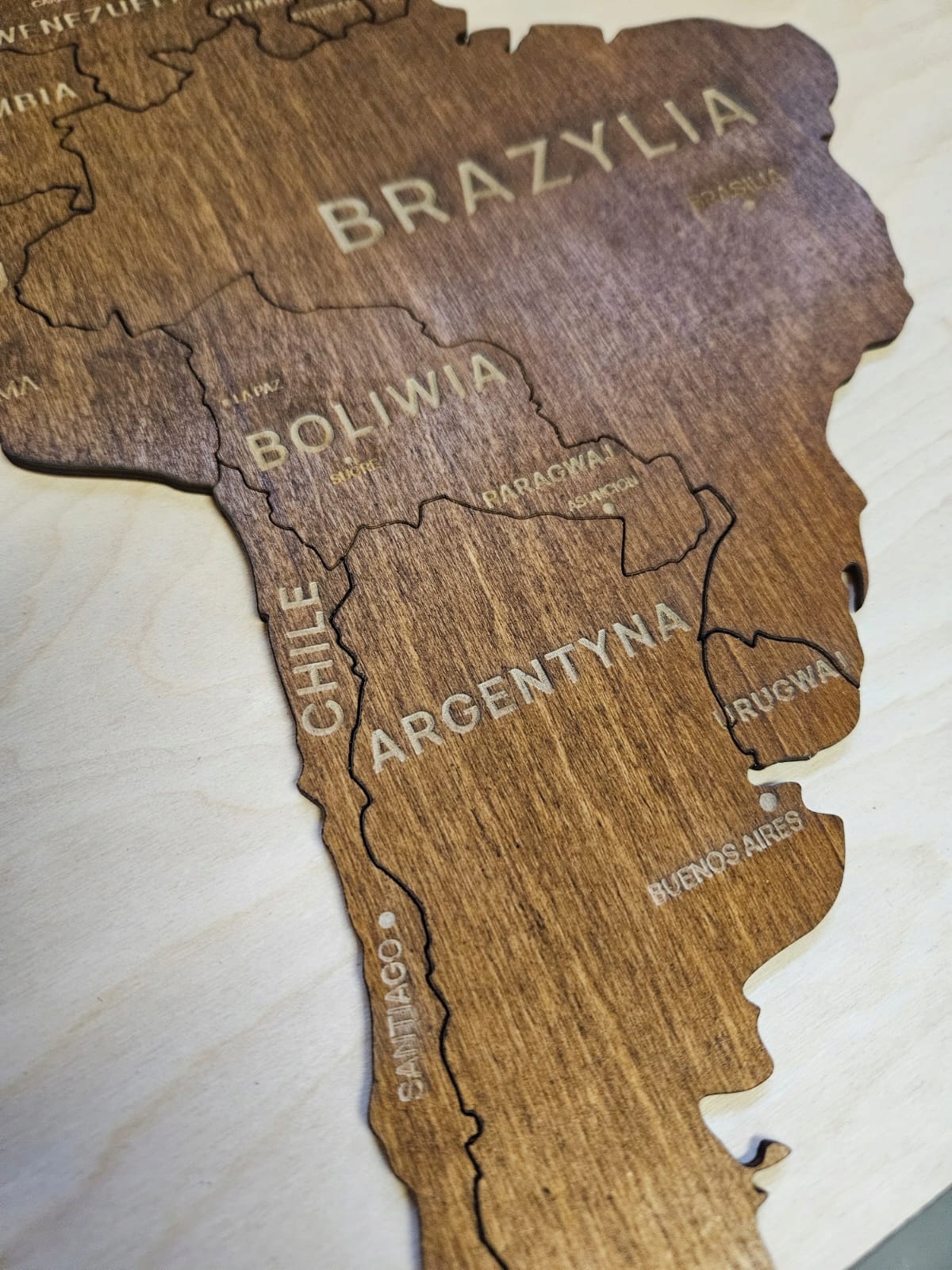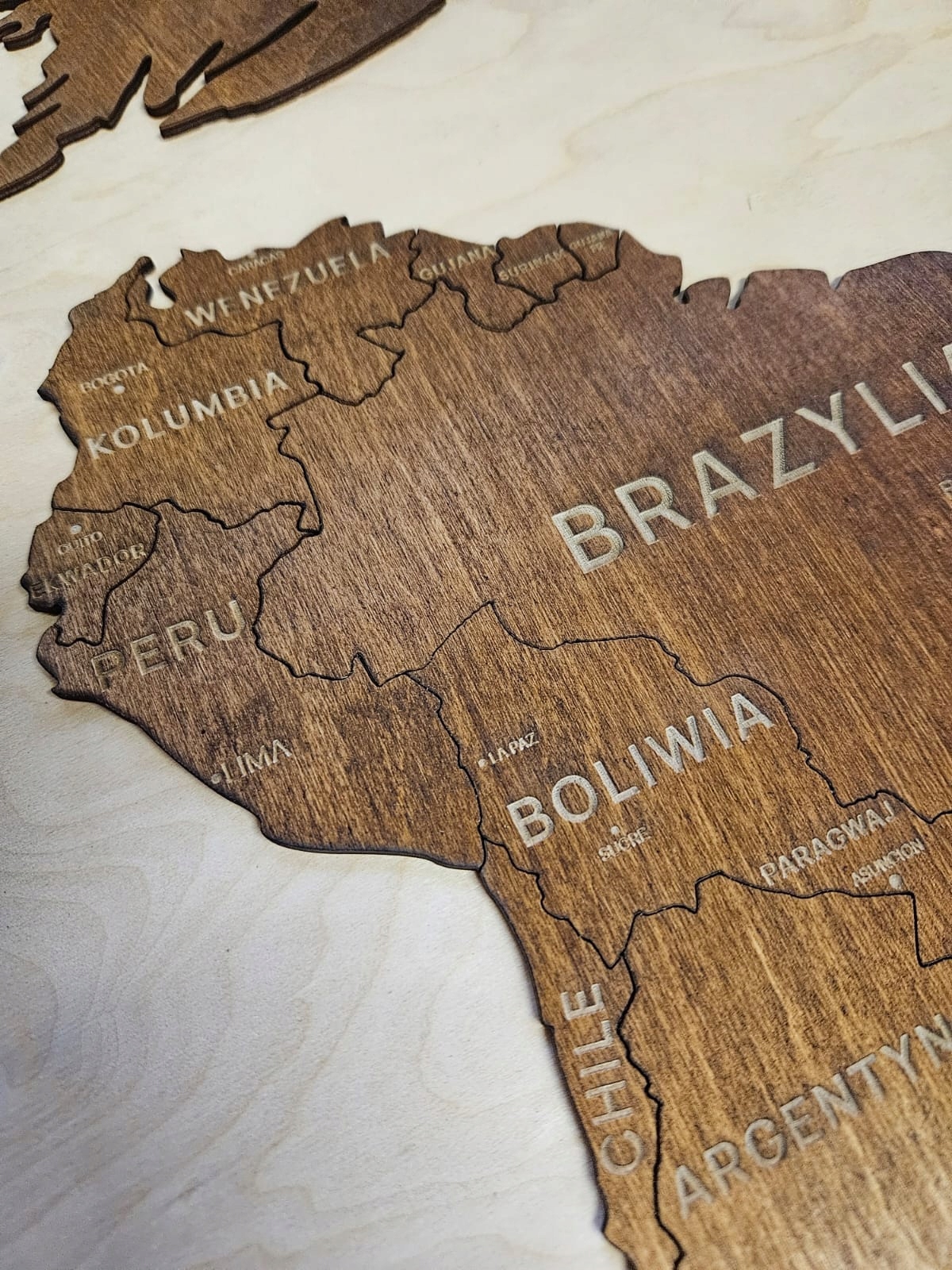 Drewniana mapa świata na ścianę to niezwykle interesujący element dekoracyjny, który może wzbogacić wygląd każdego wnętrza. Łączy w sobie estetykę naturalnej, ekologicznej sklejki z funkcjonalnością, tworząc efektowne połączenie. Umieszczając ją na ścianie, dodasz odrobinę przygody do wnętrza. Niech Twoje cztery kąty zyskają nowe życie! Świetnie sprawdzi się w sypialni, biurze, salonie, korytarzu, czy pokoju dziecięcym!