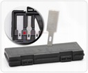 Całość zapakowana jest w plastikowe etui z magnetyczną listwą zapobiegającą zagubieniu ostrzy.