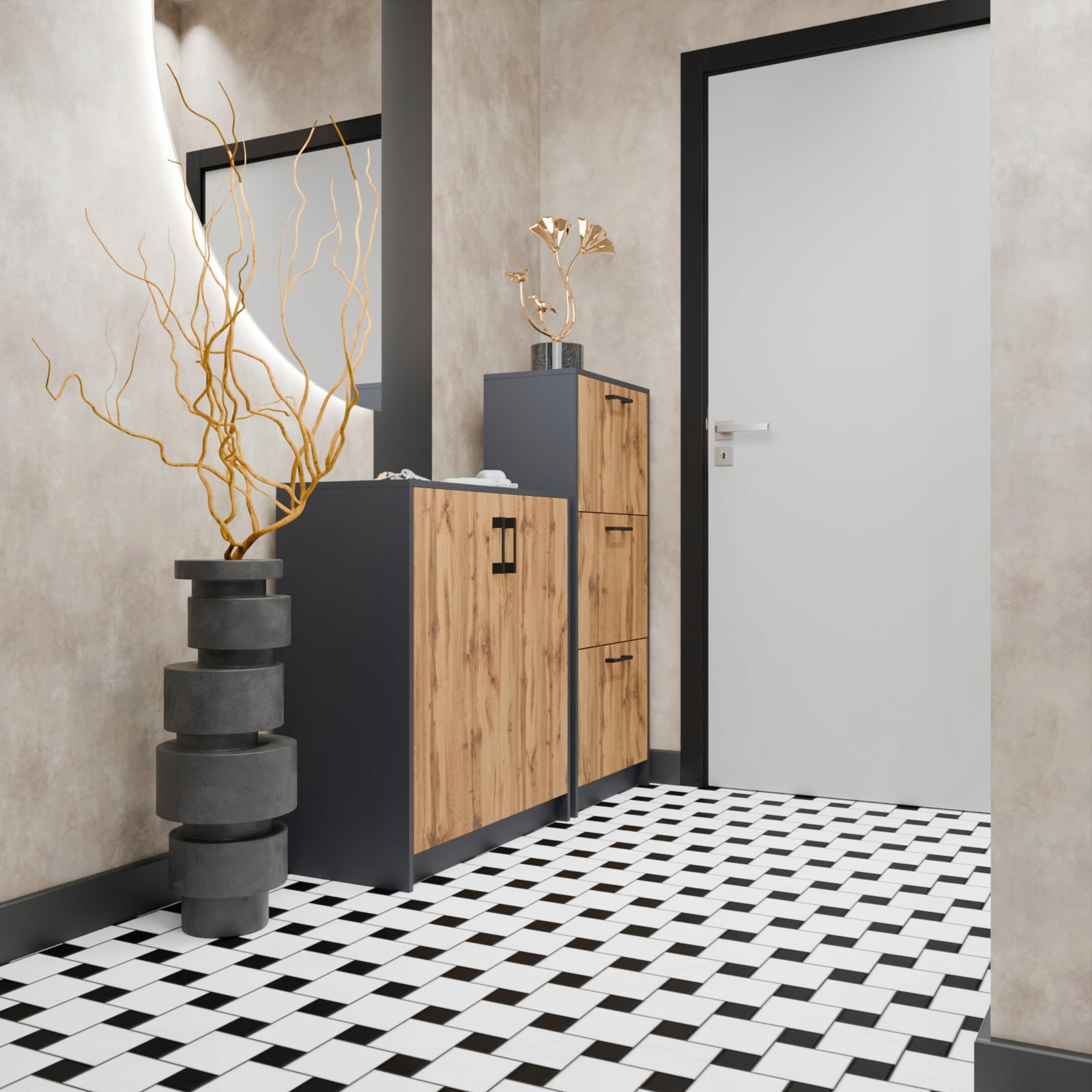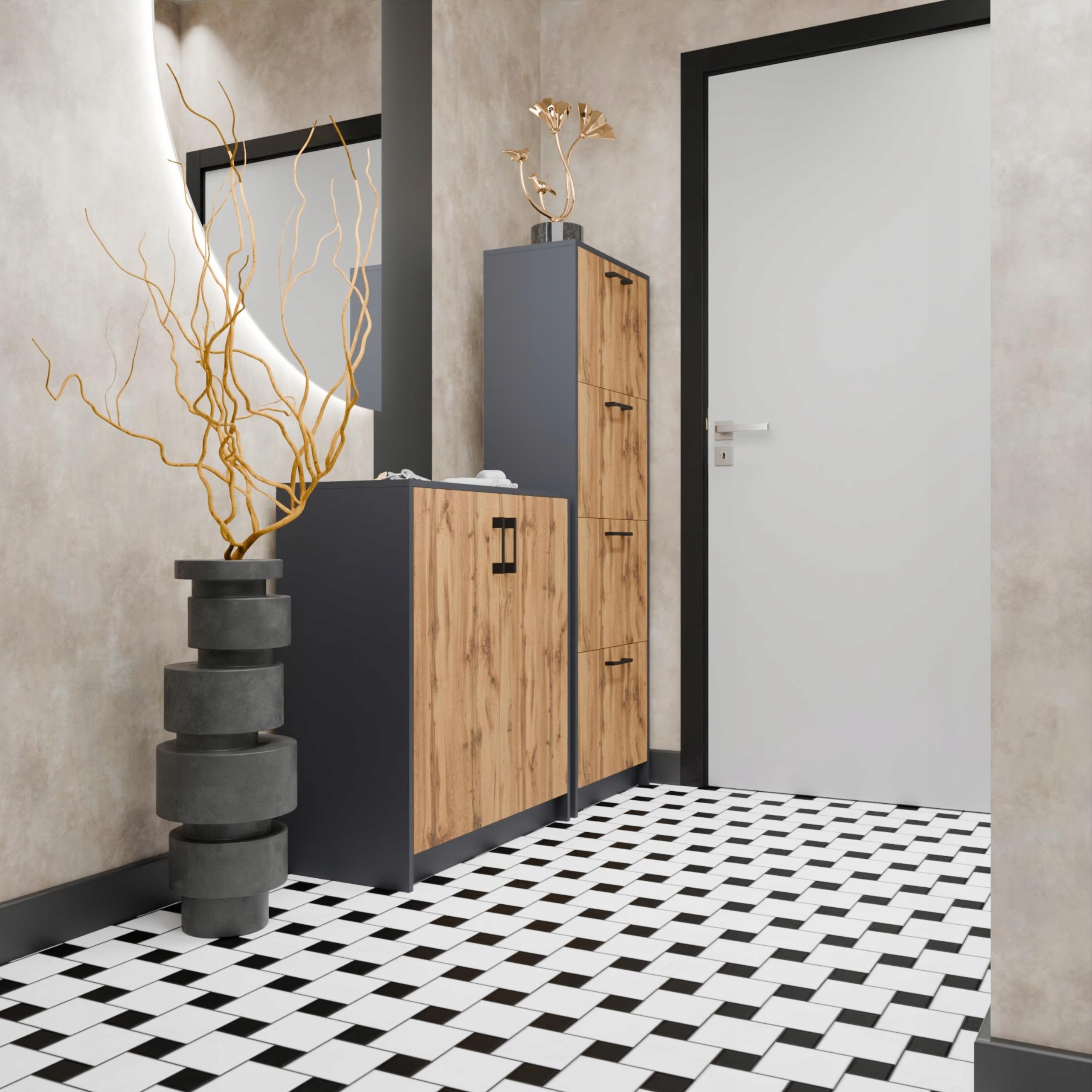 2D комод изготовлен из очень качественная ламинированная доска толщиной 16 мм, которая отличается повышенной устойчивостью к царапины и устойчивость к истиранию и влаге (возможность истирания влажной губкой).