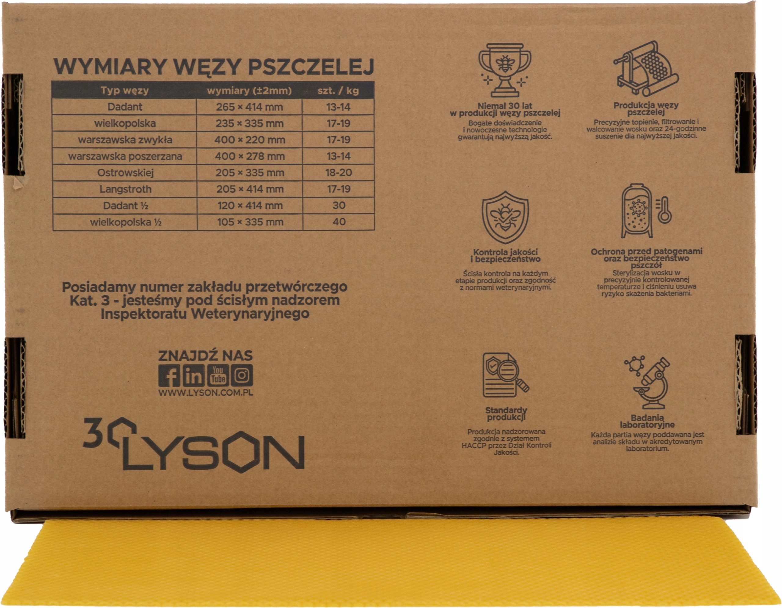 Szablon używany w pszczelarstwie z wytłoczonymi kształtami komórek plastra pszczelego umieszczany w ramce.