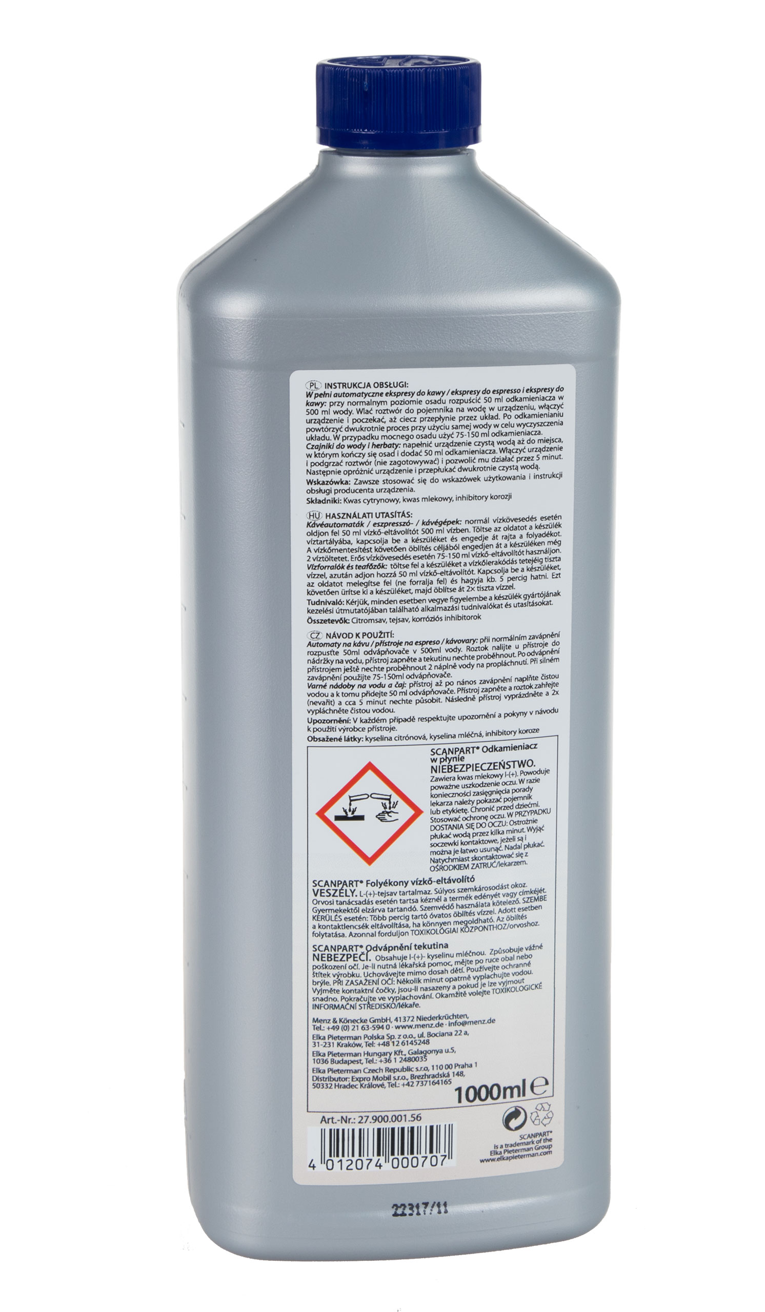 Odkamieniacz jest w 100% przyjazny środowisku jak i skuteczny w zwalczaniu osadu wapiennego gromadzącego się wewnątrz ekspresów do kawy.