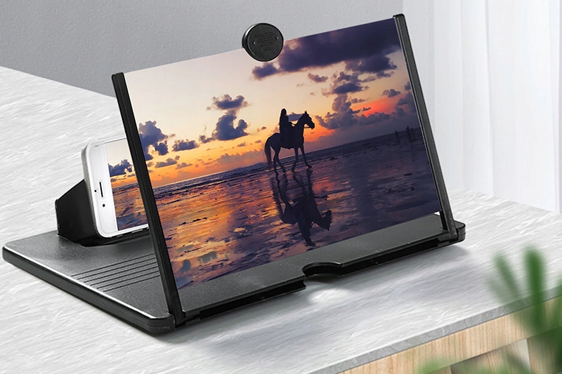 ✅ Wbudowana podstawka na telefon umożliwia oglądanie powiększonych filmików bez użycia rąk. Ekran działa bez aplikacji oraz kabli, baterii i zasilania źródła prądu.