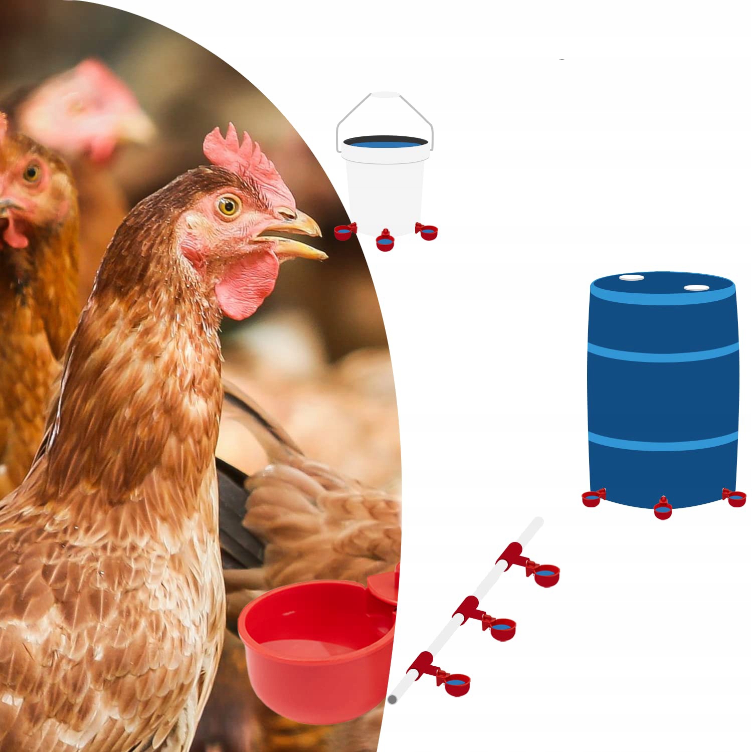 ZACHOWAJ ZDROWIE: Kubki na wodę dla kurczaków pozostają czystsze niż w przypadku korzystania z koryta i są łatwe do czyszczenia, wystarczy spuścić wodę na kubek, aby poprawić efektywność hodowli. Kurczaki, pióra, indyki i kaczki mają przez cały czas źródło świeżej i czystej wody, a system pojenia drobiu musi zapewniać stado nawodnienie i zdrowie.
