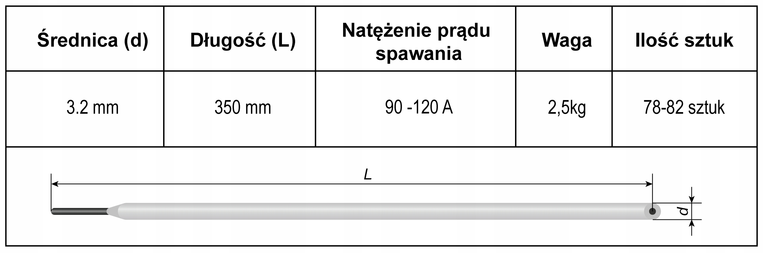 Nominalna wydajność do 115%. Elektrody o średnicy od 2,0 mm do 4,0 mm są przeznaczone do spawania we wszystkich przestrzennych położeniach oprócz pionowego "góra-dół”", natomiast o średnicy 5,0 mm - dla dolnego, poziomego na pionowej płaszczyźnie i pionowego sposobu "dół –góra".