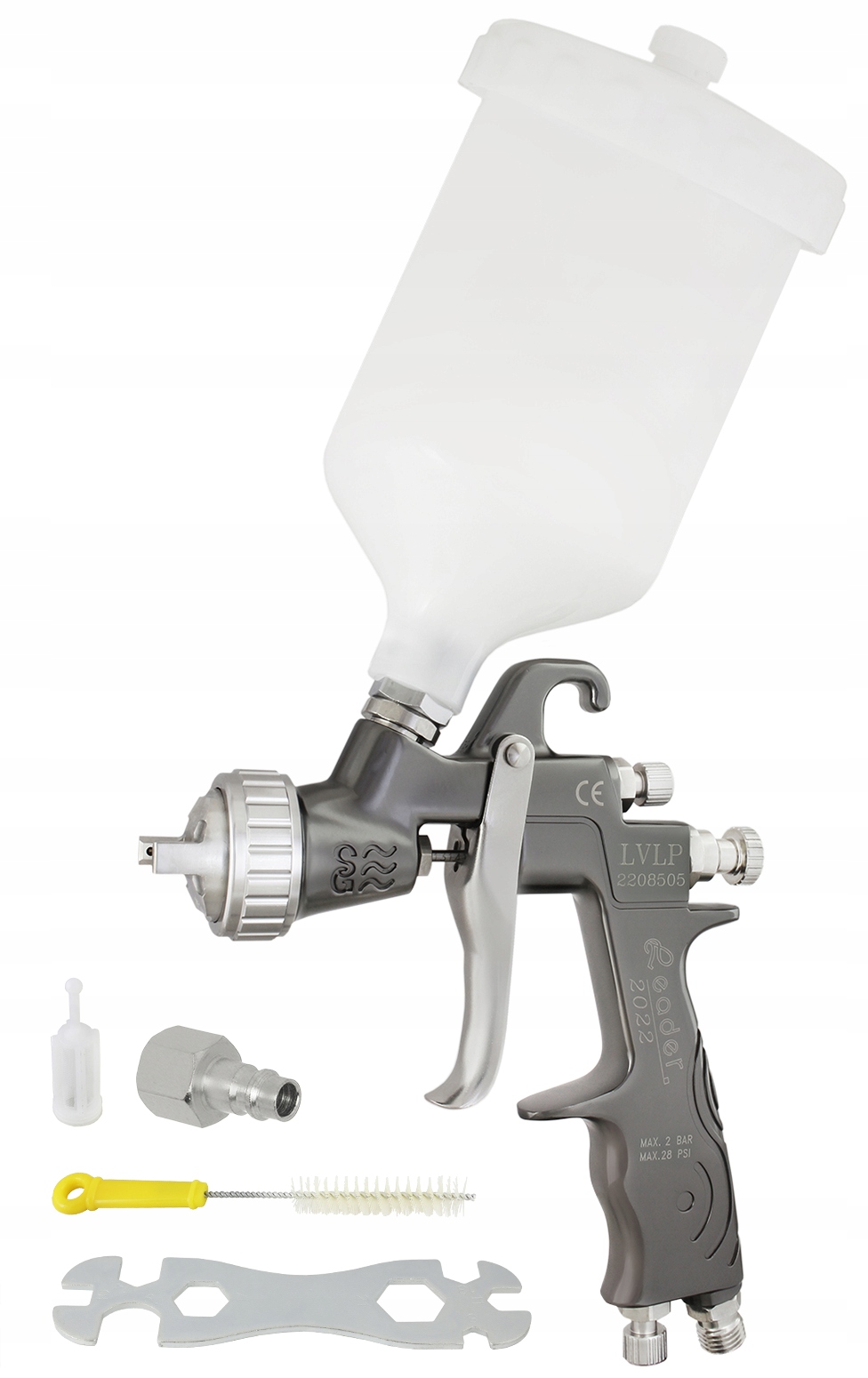 System niskociśnieniowy LVLP (Low Volume Low Presure), to najprostszy sposób do uzyskania największych oszczędności materiału powłokowego, nieznacznym kosztem wzrostu ceny pistoletu. LEADER LVLP zapewnia efektywny transfer materiału powyżej 72%, co czyni go bardzo wydajnym pistoletem o mniejszym zużyciu powietrza niż system HVLP. Pistolet idealnie sprawdzi się przy użytkowaniu z drogimi materiałami powłokowymi. Dodatkowym atutem pistoletu jest ergonomiczna, aluminiowa obudowa zapewniająca niską wagę, a także zwiększona odporność pistoletu na uszkodzenia mechaniczne, a teflonowe uszczelnienia zapewniają łatwość przy czyszczeniu jak i długą żywotność. Pistolet posiada trzy regulacje: ilość powietrza zasilającego, ilość wyrzucanego materiału, szerokość strumienia.