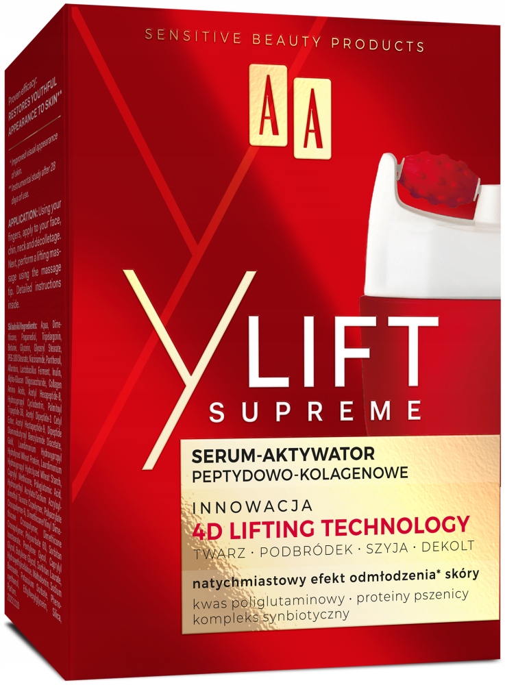 Przełomowa technologia pielęgnacyjna, która dzięki składnikom wykazującym precyzyjne, wielokierunkowe działanie odmładzające*, pozwala osiągnąć CZTEROWYMIAROWY EFEKT LIFTINGU: