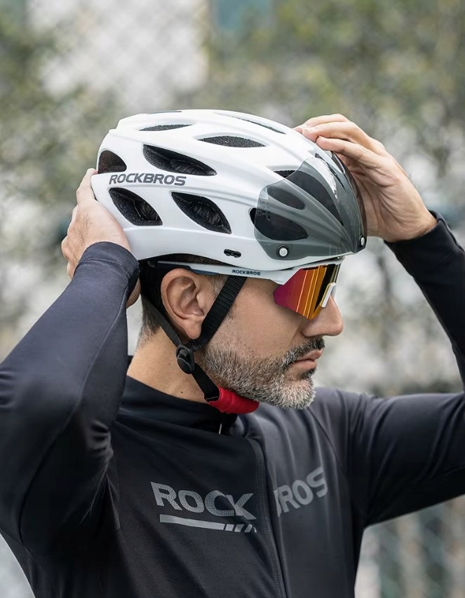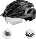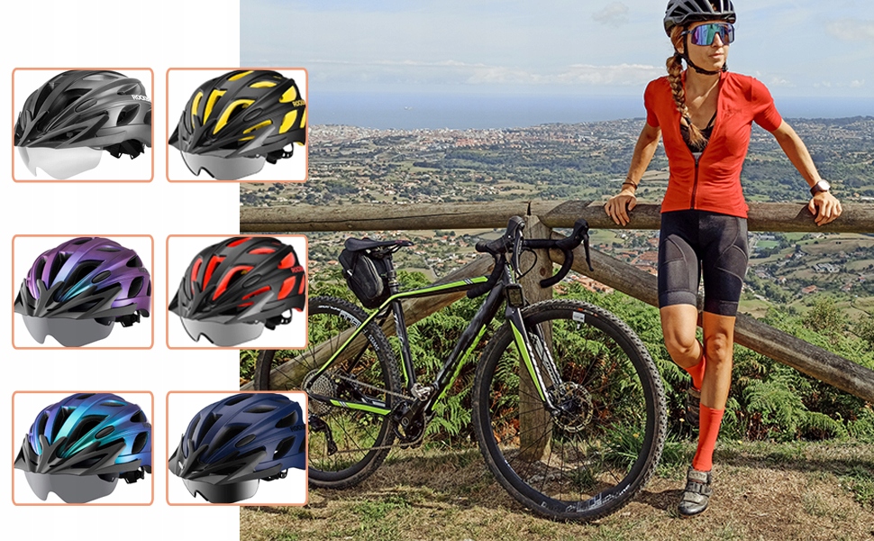 Kask rowerowy to przenośny, lekki kask rowerowy wyposażony w zdejmowaną osłonę wizjera i zdejmowaną przezroczystą, przyciemnianą osłonę przeciwsłoneczną, która chroni przed kurzem. Kask jest unisex i pasuje do większości mężczyzn / kobiet. Kółko z zatrzaskiem z tyłu kasku umożliwia regulację w zależności od obwodu głowy w ruchu. Aerodynamiczna konstrukcja i dobra wentylacja zapewniają chłód na głowie.
