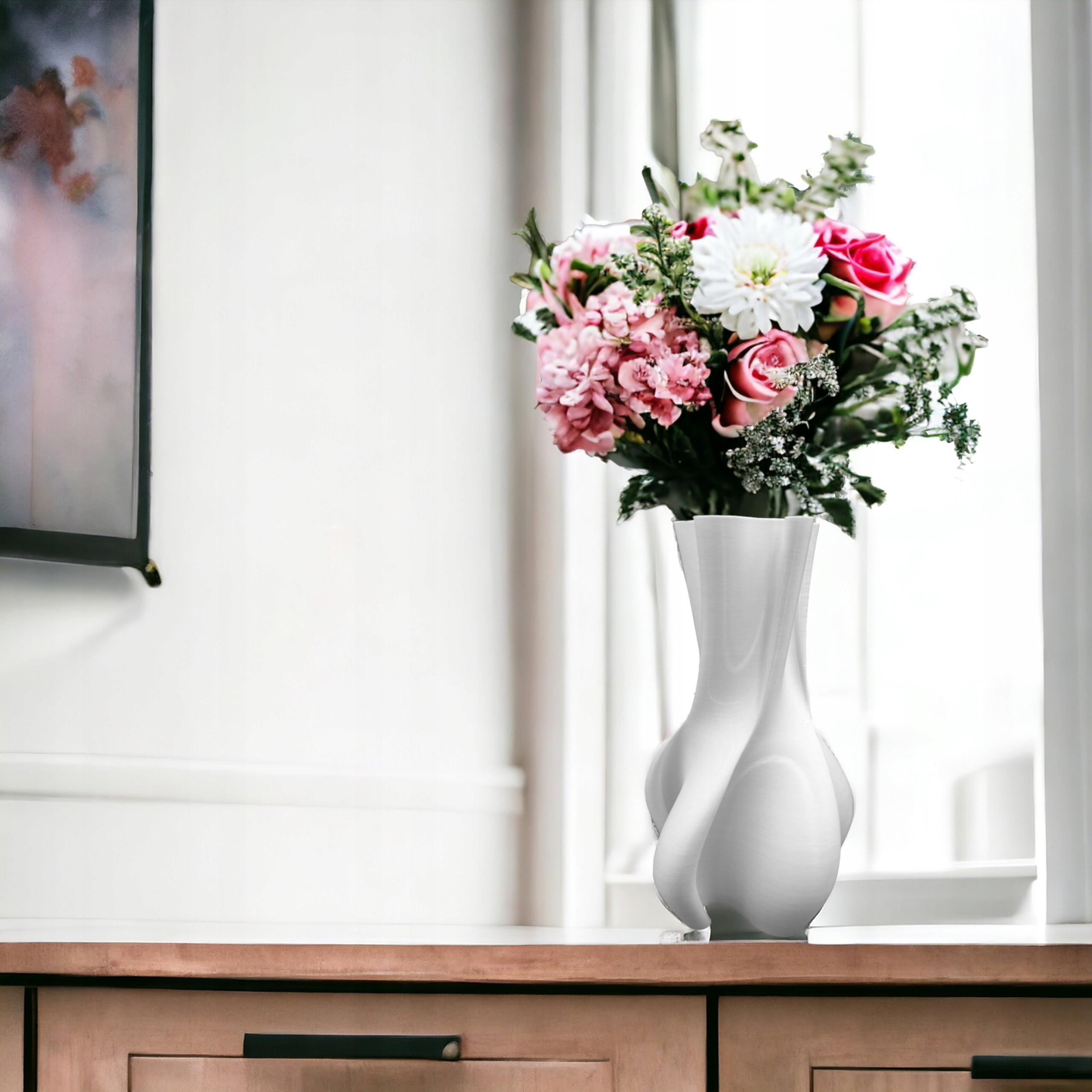 Nasz nowoczesny wazon został zaprojektowany z myślą o wprowadzeniu wyjątkowego akcentu do Twojego domu, biura lub innego miejsca, w którym pragniesz cieszyć się pięknem kwiatów