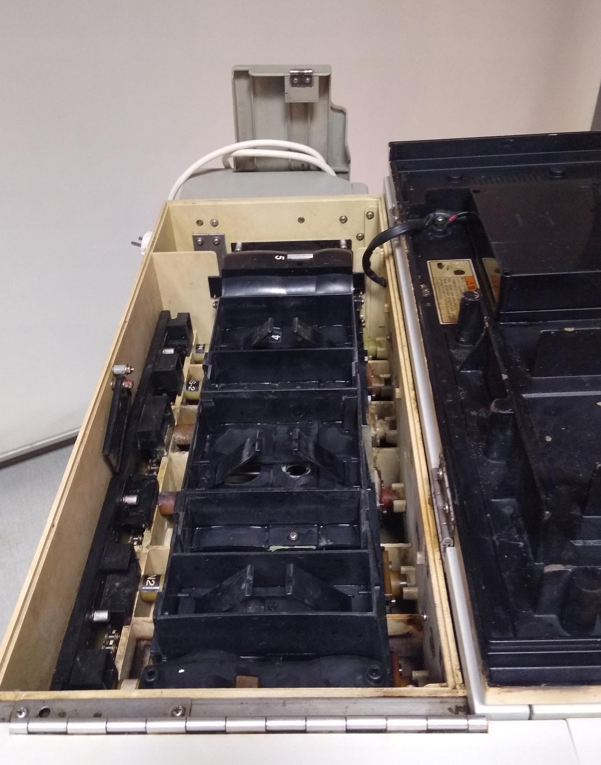 W komplecie liderowiec, podajnik do taśmy, kasety 120mm oraz kilkanaście liderów.