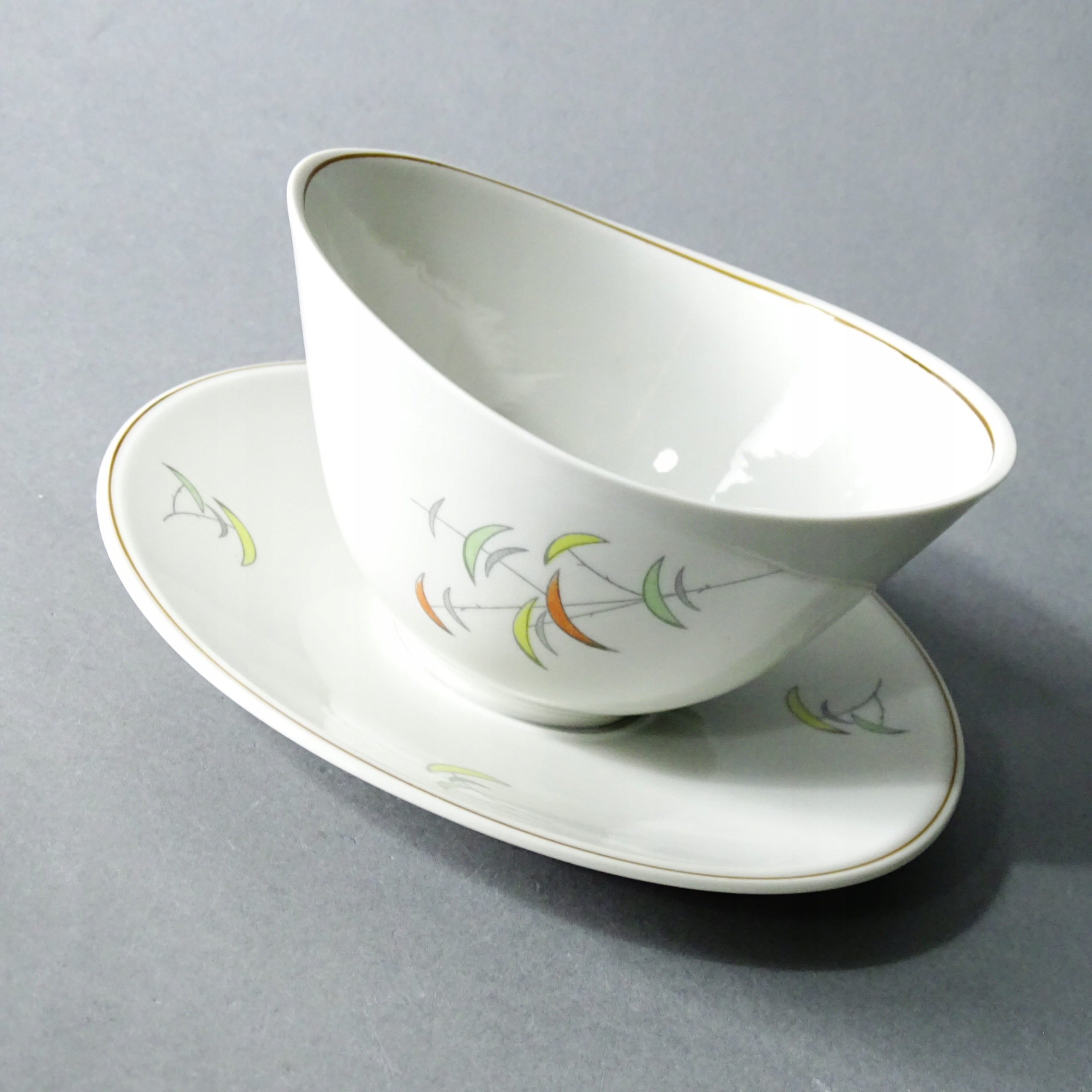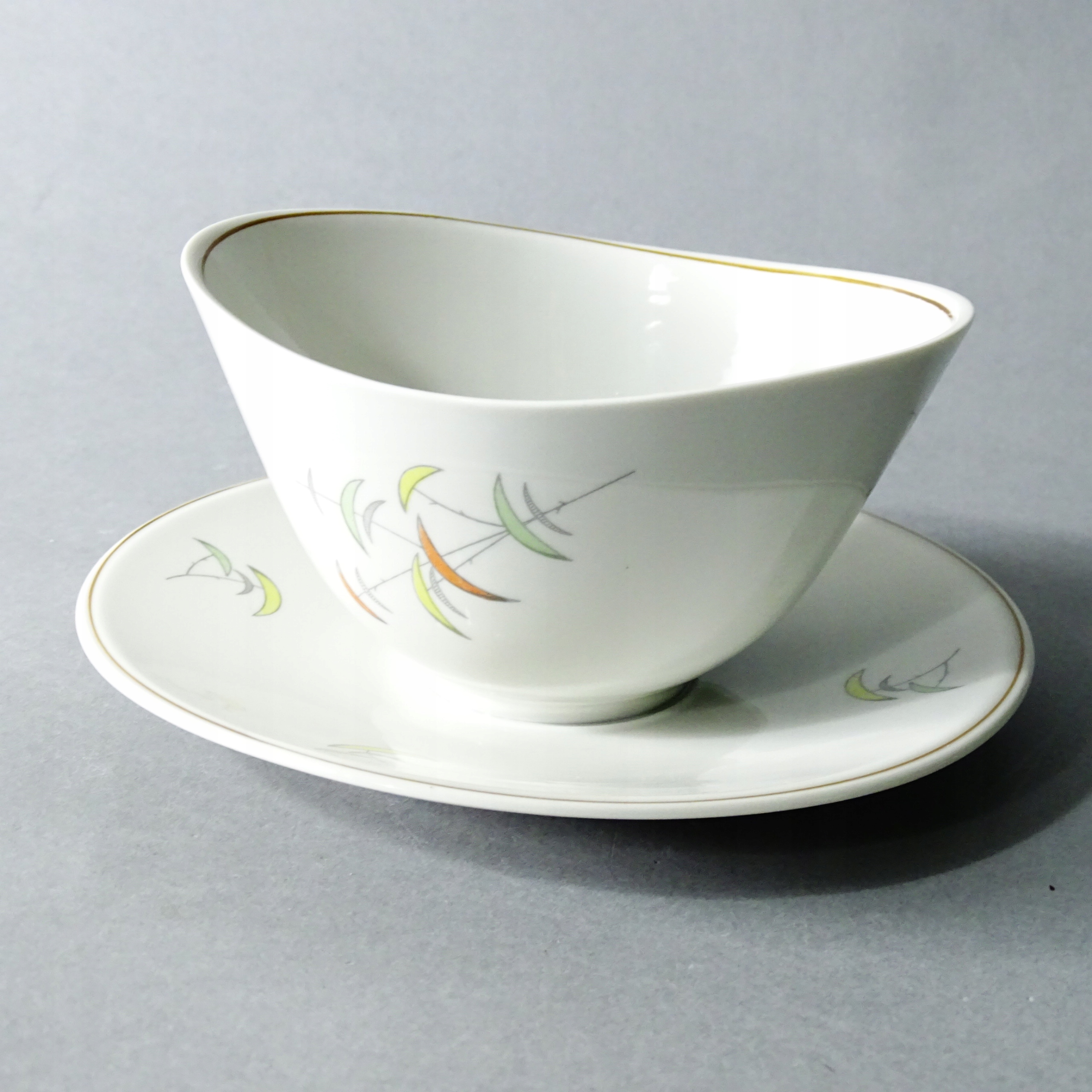 Piękna, designerska sosjerka porcelanowa.