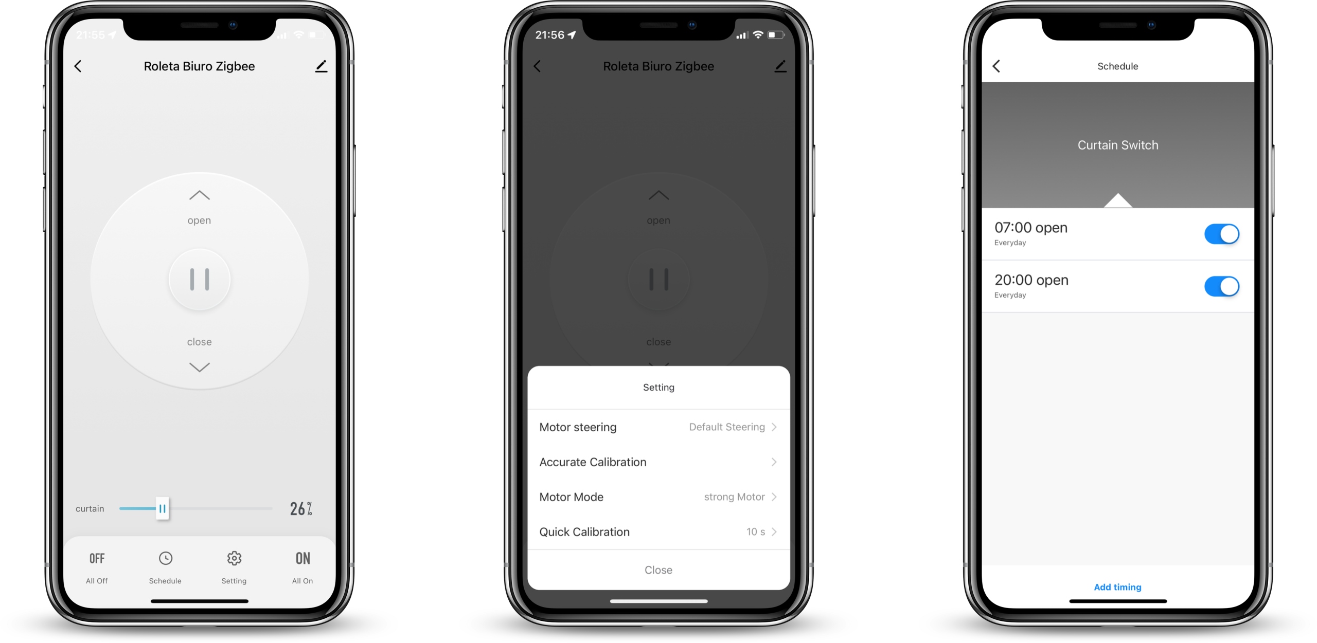 Dodatkowo możesz ustawić timery i zautomatyzować otwieranie i zamykanie rolet o określonych porach lub w zależności od aktualnej pogody na zewnątrz.
