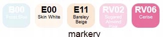B00 Frost BlueE00 Skin WhiteE11 Bareley BeigeRV02 Sugared Almond PinkRV06 Cerise