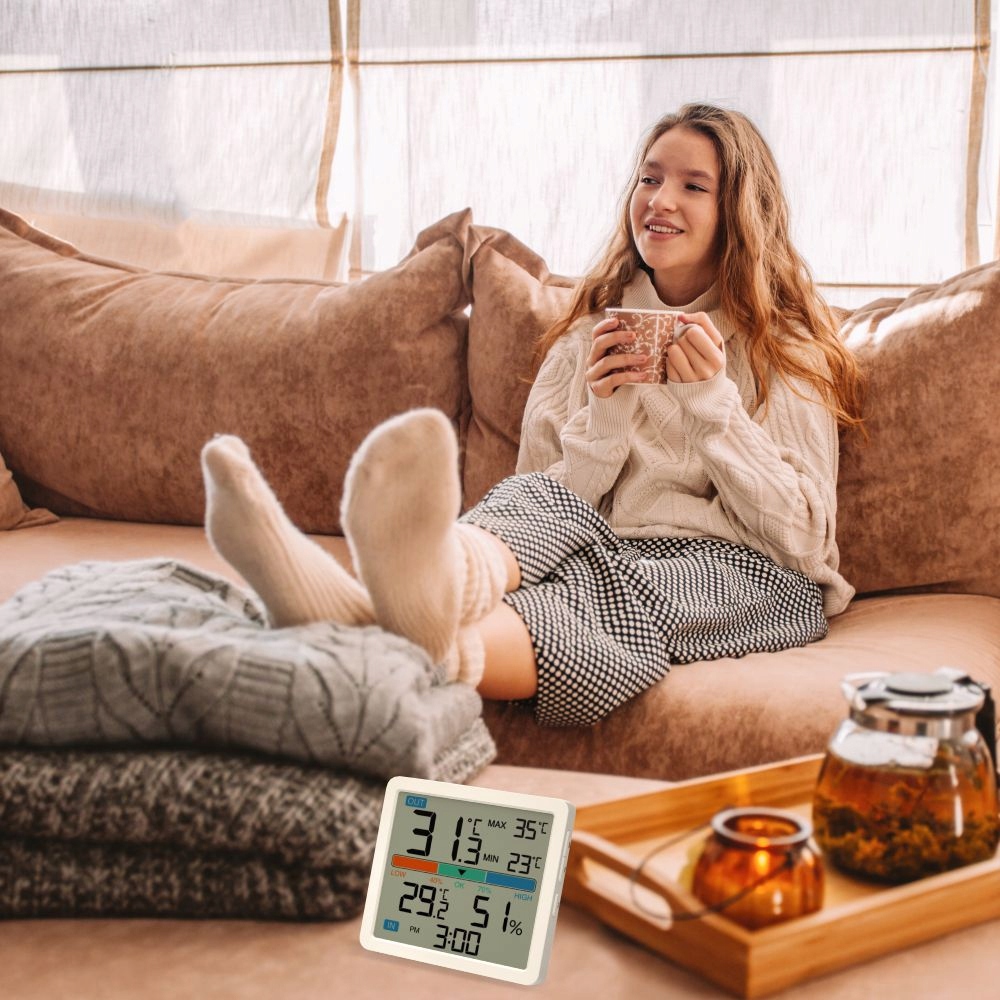 Termometr Manta MTO002W oferuje kompleksową funkcjonalność, aby zapewnić pełną kontrolę nad warunkami wewnętrznymi. Dodatkowe wyświetlanie aktualnej godziny pozwala na wygodne monitorowanie czasu, jednocześnie ułatwiając codzienne zadania. Dzięki funkcji pamięci maksymalnej i minimalnej temperatury, użytkownicy mogą śledzić ekstremalne wartości, które miały miejsce w danym pomieszczeniu. Manty MTO002W to nie tylko termometr z higrometrem, ale również kompleksowe narzędzie do kontroli warunków klimatycznych w domu.