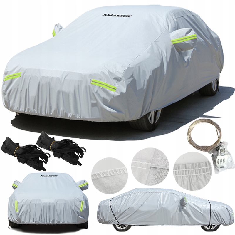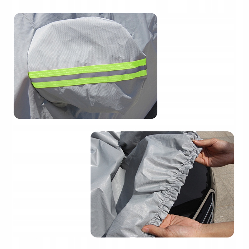 W zestawie dodatkowo znajdziemy paski montażowe. Dzięki nim zapobiegniesz jego kradzieży oraz ekstremalnym warunkom pogodowym. Pokrowiec zostanie na Twoim aucie nawet podczas mocnych wiatrów.