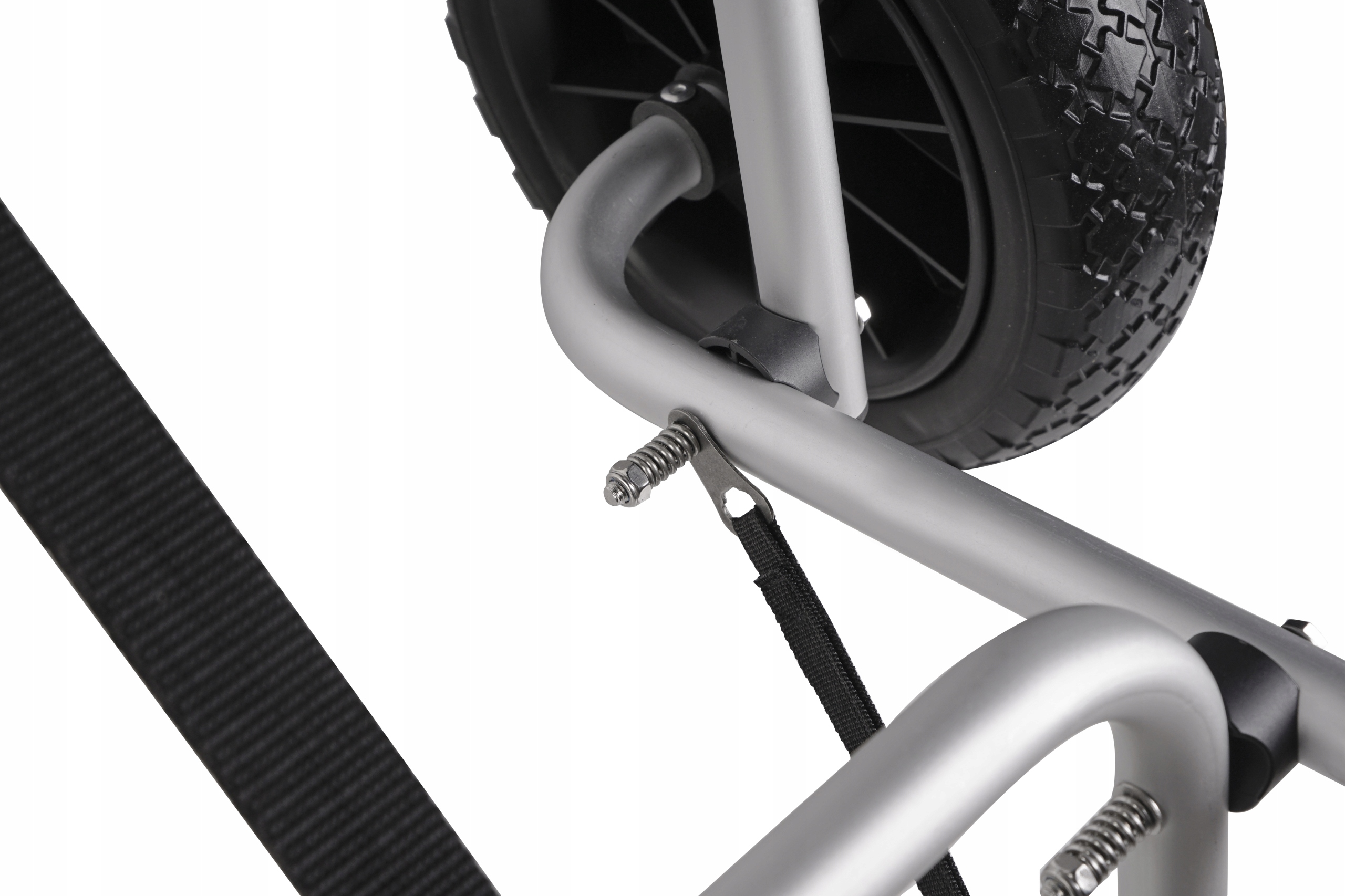Wózek jest wyposażony w składaną podpórkę (o dwóch punktach podparcia) stabilizującą kajak/kanu podczas załadunku.