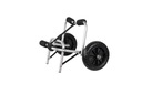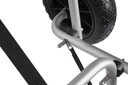 Wózek posiada dwa wytrzymałe gumowe koła i lekką a zarazem solidną konstrukcję z aluminium. Można go łatwo złożyć.