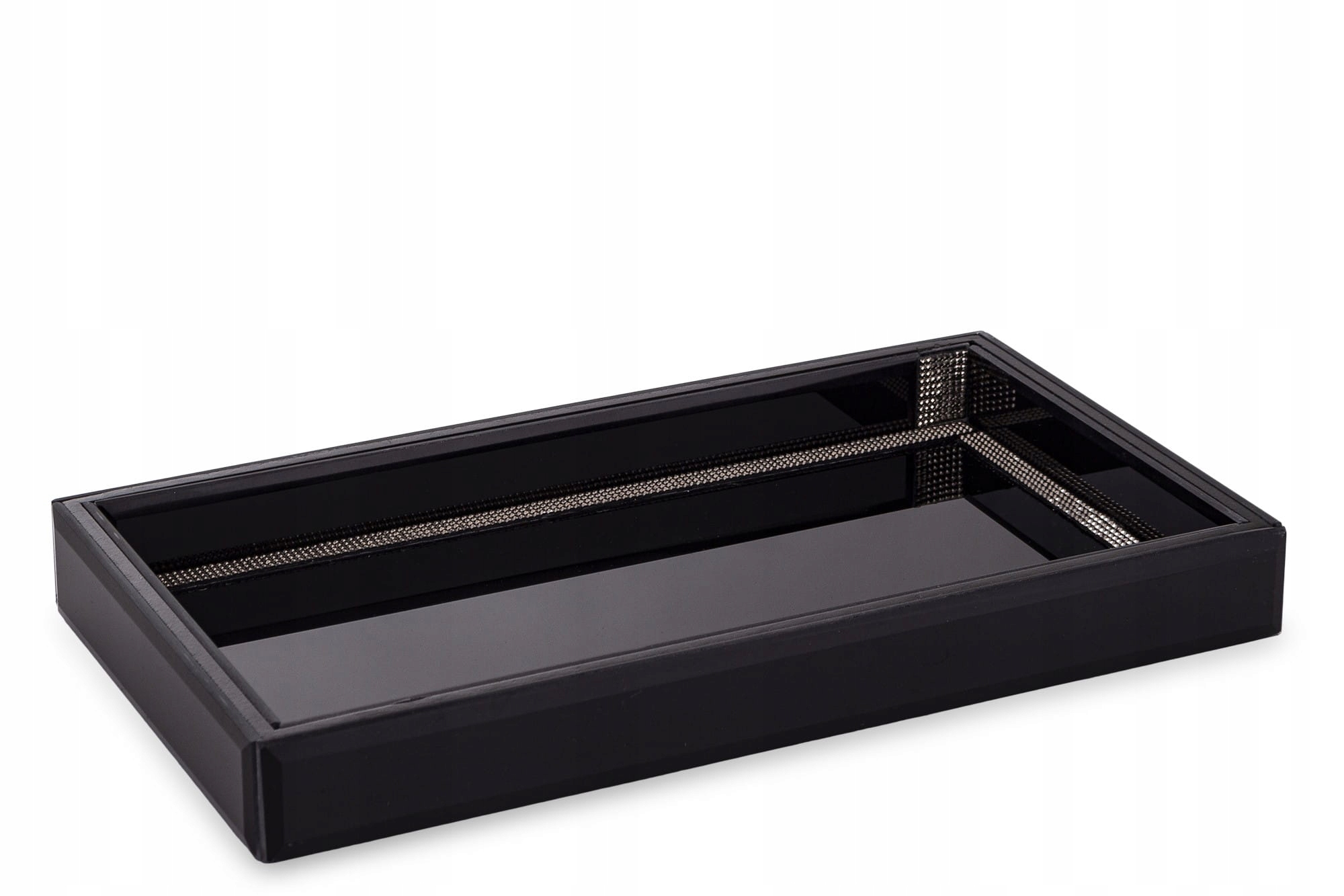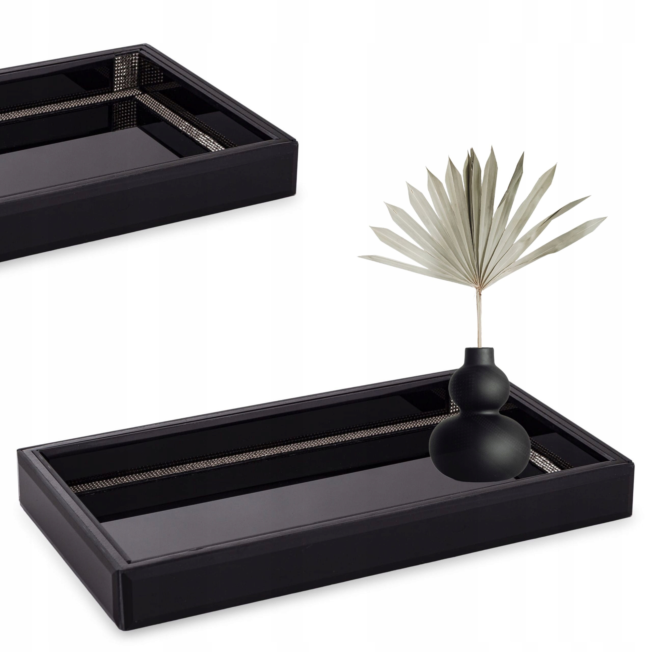 Przedmiotem sprzedaży jest piękna czarna prostokątna taca wykonana z lustra i płyty mdf. Podstawa tacy wykonana z czarnego szkła. Będzie wyjątkową ozdobą w salonie czy jadalni. Jej unikatowy design sprawi, że nie pozostanie niezauważona. Idealna dla miłośników oryginalnych dodatków.