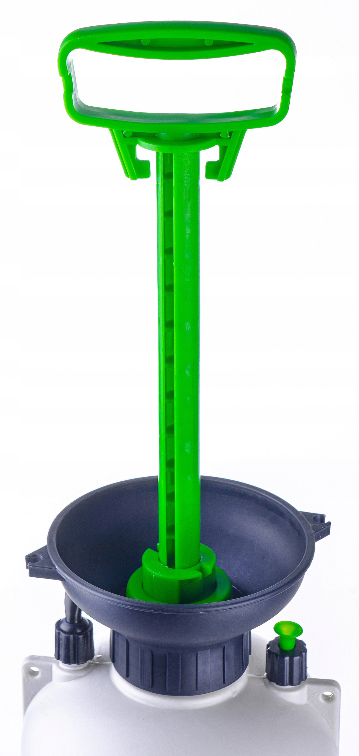 Odkręcając pompę, możesz nalać wodę lub mieszankę roztworu do środka zbiornika o pojemności 8 litrów
