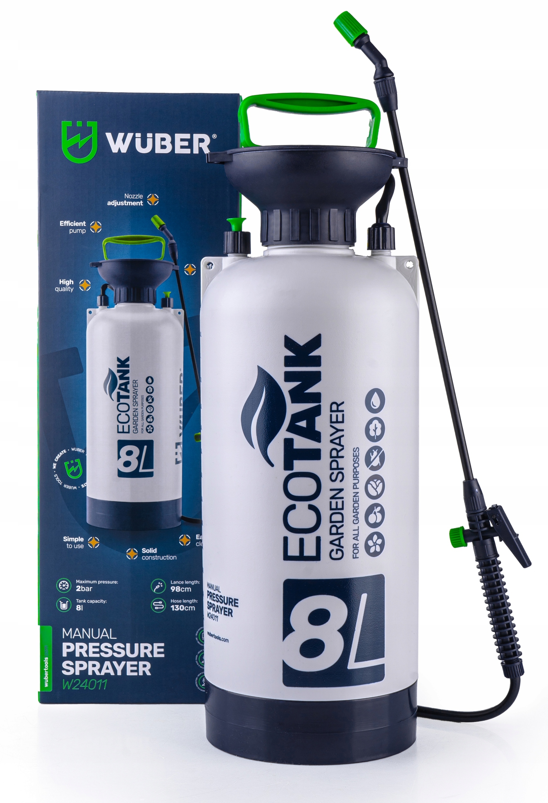 Opryskiwacz został wykonany z wysokiej jakości materiałów, dzięki czemu wykazuje wysoką odporność na wszelkie szkodliwe czynniki zewnętrzne