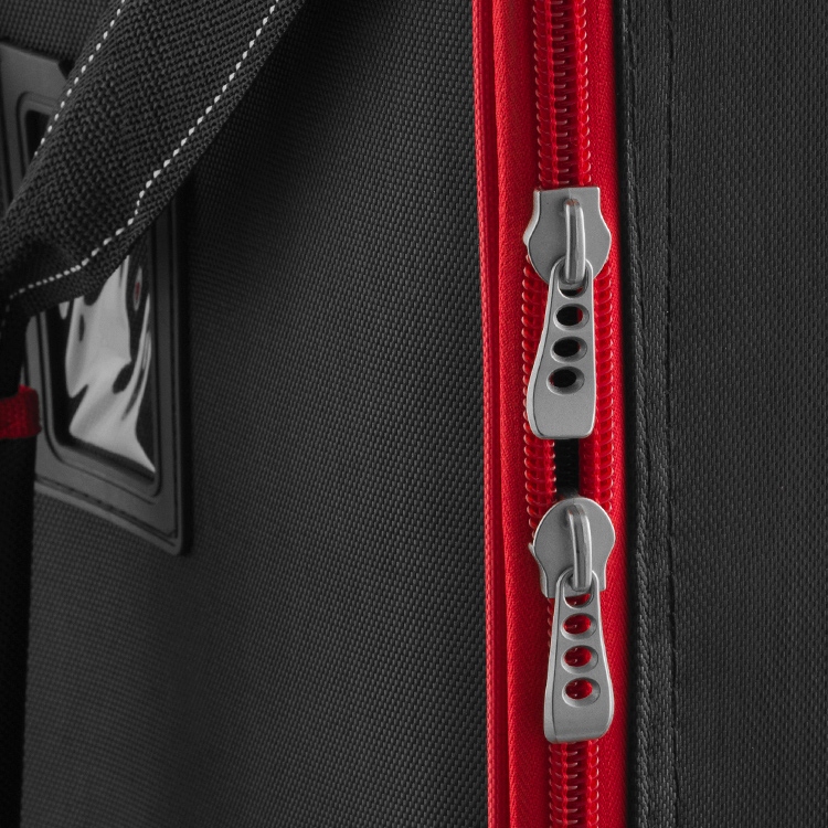 Sztywna konstrukcja torby, ze ściankami wypełnionymi grubą warstwą pianki tłumiącej wstrząsy bardzo dobrze zabezpiecza przewożony sprzęt przed uszkodzeniami. Mocowane na rzep przegrody pozwalają dopasować wnętrze do przewożonego wyposażenia, a pasy wewnątrz torby dodatkowo je zabezpieczą. Torba wykonana z wysokiej jakości tkaniny nylonowej, odpornej na przetarcia. Spód torby wzmocniony jest grubymi plastikowymi listwami, służącymi także jako nóżki. Na jednym z krótkich boków znajdują się dwa kółka i nóżka podpierająca torbę w pozycji pionowej, a na przeciwległym boku solidny plastikowy uchwyt. Ponadto torba ma dwoje uszu spinanych patką, z szerokiej taśmy nylonowej.